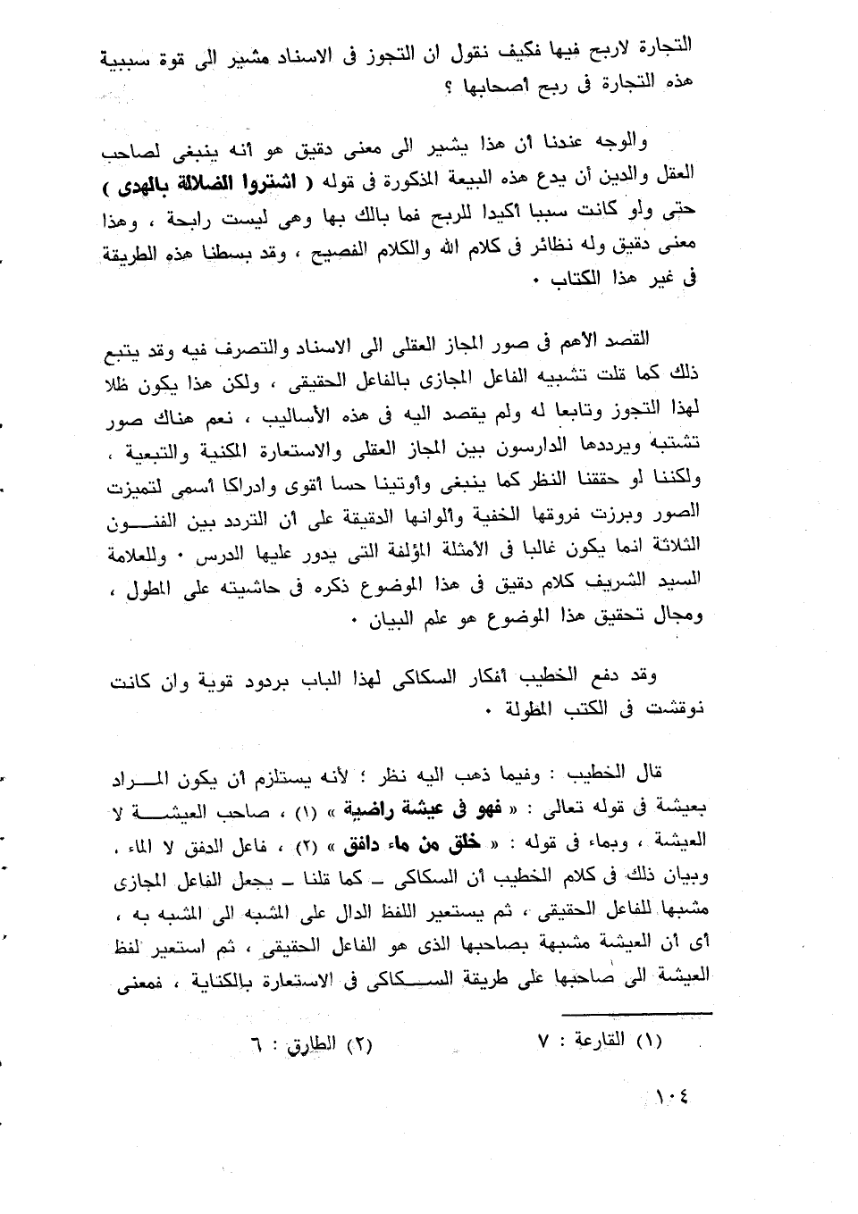 وليس مجازًا، وإن كان باطلًا عندنا، ومن ذلك قوله تعالى حكاية عن هذه الطائفة الدهرية: {وَمَا يُهْلِكُنَا إِلَّا الدَّهْرُ} 1، فقد أسندوا الإهلاك إلى الدهر وهم يعتقدون ذلك، وهو إسناد حقيقي، وإن كان باطلًا وشعراؤنا يسندون الأحداث إلا الأيام والدهر كثيرًا: فالدهر هو الذي فجع البارودي في حليلته، ولم يرحم ضناه وأفردهن: "قرحى العيون رواجف الأكباد"، ولم يقدح ذلك في إيمان البارودي؛ لأنه سلك في القول مسلك المجاز، والقرآن ينسب الأحدث للأيام في قوله تعالى: {يَوْمًا يَجْعَلُ الْوِلْدَانَ شِيبًا} 2، وغير كثير، وكل ذلك سالك مسلك المجاز ما دام قائله لا يعتقد ظاهره، والقرائن هي التي ترشدنا إلى أنه يعتقد ما يقول أو لا يعتقد.