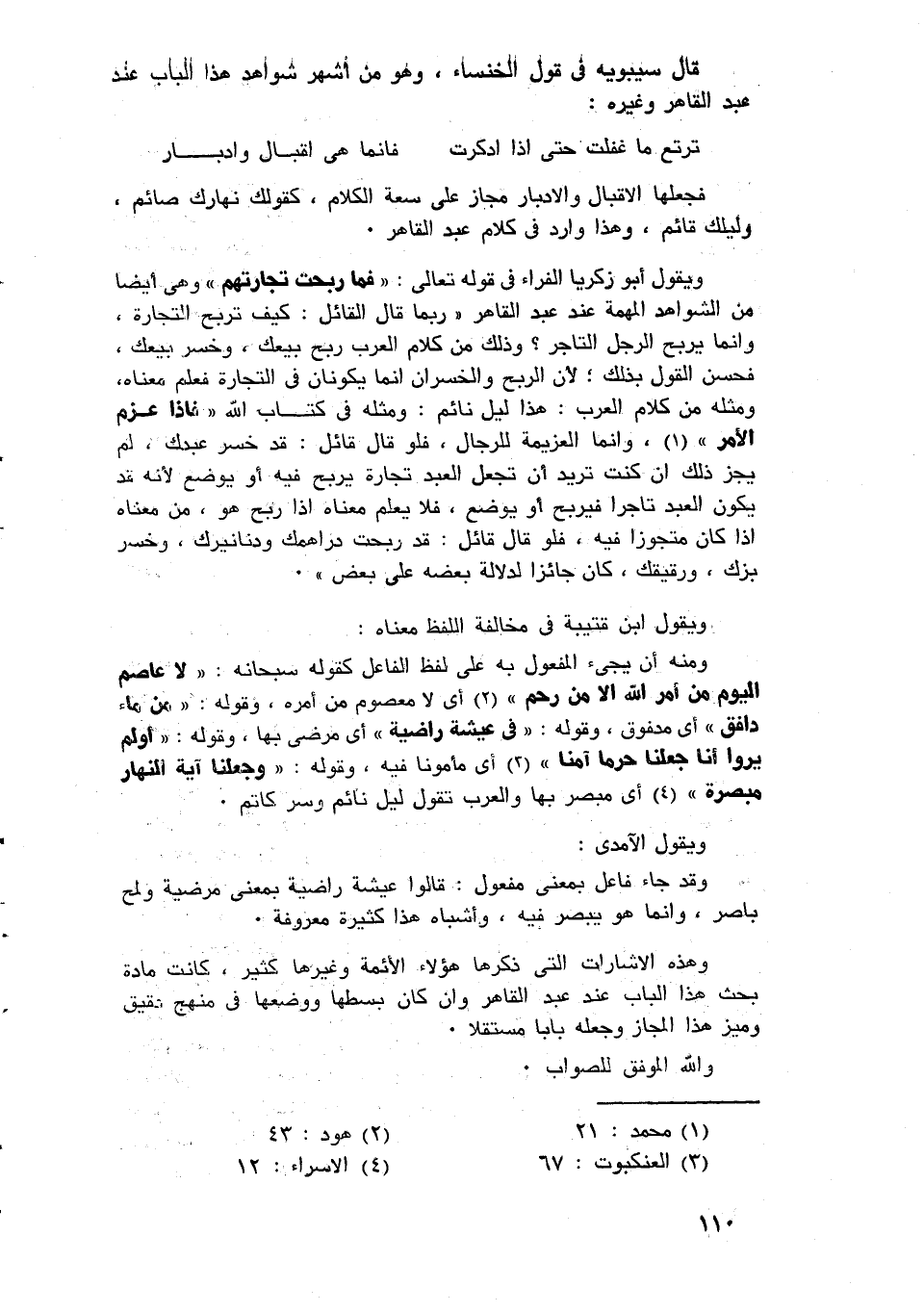 وقد تكلم عبد القاهر في هذه القرينة، وبين أنها إما أن تكون استحالة وقوع الفعل من الفاعل كقولك: سرتني رؤيتك، وإما أن تكون راجعة إلى