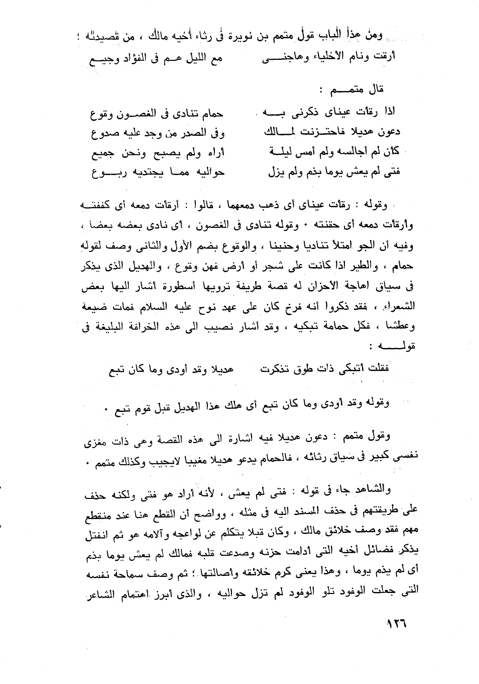 وهذا الخلط لا يخطئه الحس، فحنين العجول يذكر مع طوفانها حول البو، كما في الرواية التي أثبتناها أولًا، ومساعدة الأظآر لها على التحنان يناسب إرزامها، فقد قالوا: إن الإرزام أقل من التحنان، وكأن أصوات أشواقها تتصاعد إرزاما وتحنانا، وقولها هنا: إذا نسيت، كبيرة في الشعر لا تقع فيها الخنساء؛ لأن ناقتها تغفل فقط ولا تنسى؛ لأنها إذا نسيت فقد ذهبت لوعتها، والذكر حصول الشيء، وحضوره سواء كان بعد غفلة أو بعد نسيان، وحديث الناقة في أبيات الخنساء كله مثل تصف به لوعتها، وهذا فن من القول خلوب كتب فيه زكي مبارك كتابة طيبة أفادها من الشيخ المرصفي، الذي قال في مزايا أسلوب الأعشى: إنه ابتدع أسلوبا لم يسبقه إليه الشعراء، واقتدى به من جاء بعده منهم في هذا الأسلوب، ثم شرح الطريقة التي جاءت عليها الآبيات، وأظن أن طواعية هذه الطريقة، وسلاستها في شعر الخنساء، ولبيد والنابغة،