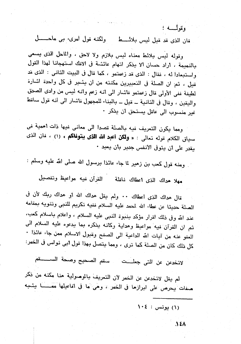 وعبارته في ذلك: "والنكتة أن المجاز لم يكن مجازًا؛ لأنه إثبات الحكم لغير مستحقه، بل؛ لأنه أثبت لما لا يستحقه تشبيها وردا إلى ما يستحق، وأنه ينظر من هذا إلى ذلك، وإثبات ما أثبت للفرع الذي ليس بمستحق يتضمن
