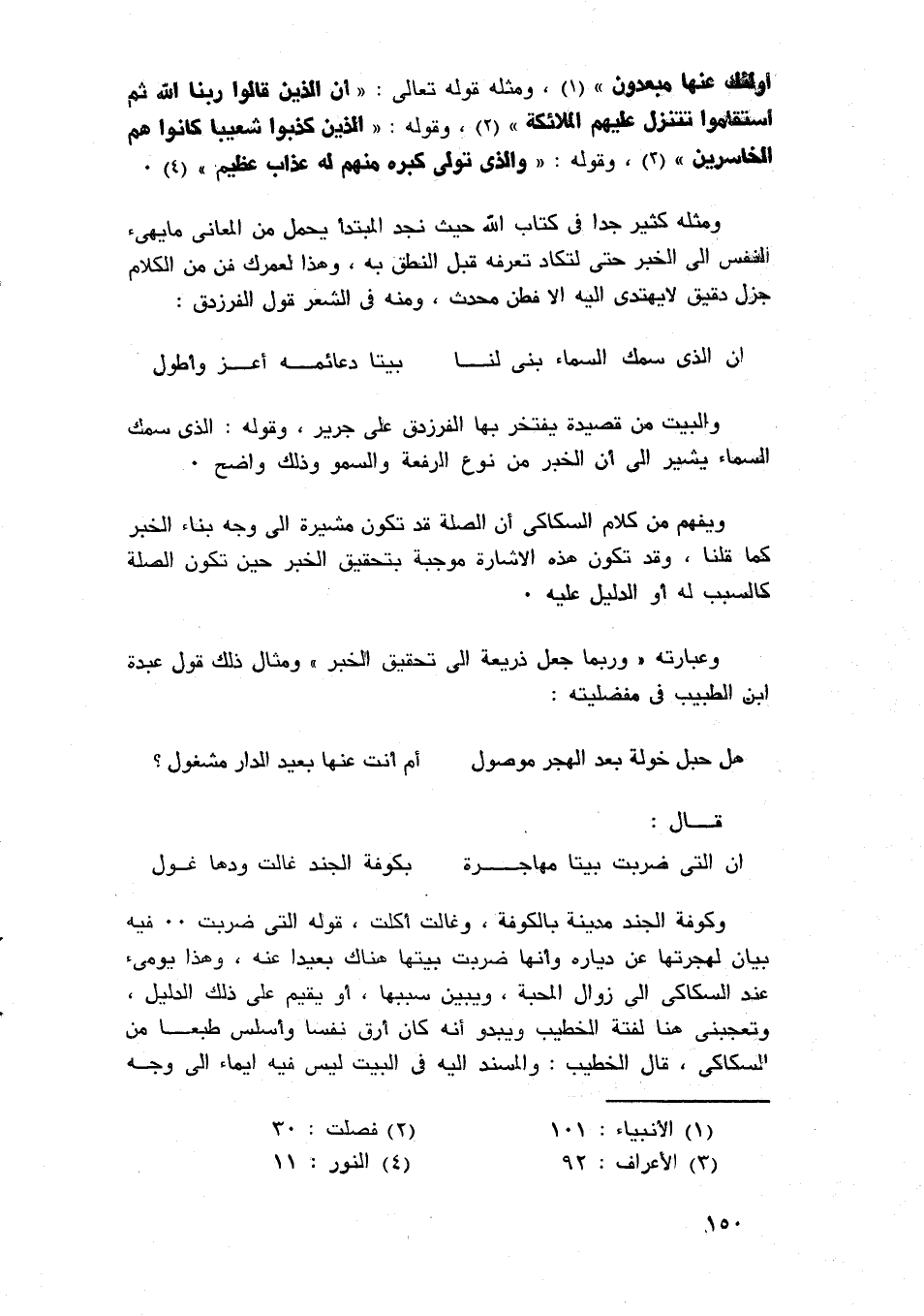 عبد القاهر جهدًا غير قليل في الدفاع عن مجازه هذا، وفي تميزه عن المجاز المعروف، ولكن لا شك أن الأساس المعروف الذي يبنى عليه هذا التميز محل نظر، وكأن العلامة المرحوم يشير إلى عدم تقبله الفرق بين المجازين، وأن الأفضل أن يكون مجازًا واحدا هو مجاز أرسطو، وينتهي الأستاذ في محاضرته إلى أن أرسطو لم يكن المعلم الأول للمسلمين في الفلسفة وحدها، ولكنه إلى جانب ذلك معلمهم في علم البيان، وقد حمل المرحوم هذا الفكر إلى أحفاد أرسطو في مؤتمر المستشرقين، وملأهم به زهوا فوق زهو، وكانو آنذاك مغتصبين بلادنا، وينهبون خيراتها، والمصريون الأحرار يجاهدونهم بأرواحهم ودمائهم، وعميد الأدب ورائد التنوير يضرب بعلومهم علومنا، وبتاريخهم تاريخنا، وبآبائهم آباءنا، وعلى سنته هذه يمضي بقية الرواد، وأعلام النهضة ورجال التنوير، وأنا أقرأ هذا ومثله كثير، وأذكر مقالة قسيس أسباني كان يعيش في الأندلس، ورأى قومه من القوط، والنصارة قد فتنوا بالعرب المسلمين، وآدابهم وعاداتهم، فتكلموا العربية وقرأوا شعرها، ولبسوا ثياب العرب، فصاح فيهم هذا القسيس قائلا: إنكم إن فتنتم بثقافتهم، وعلومهم ولغتهم، وتراثهم فلن تخرجوهم من بلادكم، وكان هذا القسيس صادقًا في وطنيته مع ضلاله وكفره، ولهذا وغيره أرتاب في هذه الشخصيات، وفي حملة فكرهم من بعدهم، والذي أعرفه منهم معرفة قريبة يؤكد عندي هذا الارتياب، ولنترك هذا ونعود إلى القضية؛ وواضح جدا أن التراث العربي يتضمن بحوثا طيبة في المجازين اللغوي، والعقلي قبل عبد القاهر، ولا يخطئنا ذلك إذا نظرنا في كتاب "الكامل"، و"الخصائص"، و"البديع" و"الوساطة"، و"الموازنة"، وغيره ذلك، وكان جهد عبد القاهر بعد هؤلاء جهدًا طيبًا ومباركا، فقد بسط ما أجملوه، وحرر كثيرا من المسائل، وميز الفنون بعضها من بعض، وقد أنفق أكثر جهده في أسرار البلاغة ليؤكد الفروق بين المصطلحات؛ لأنه قد سبق بدراسة المسائل كلها.