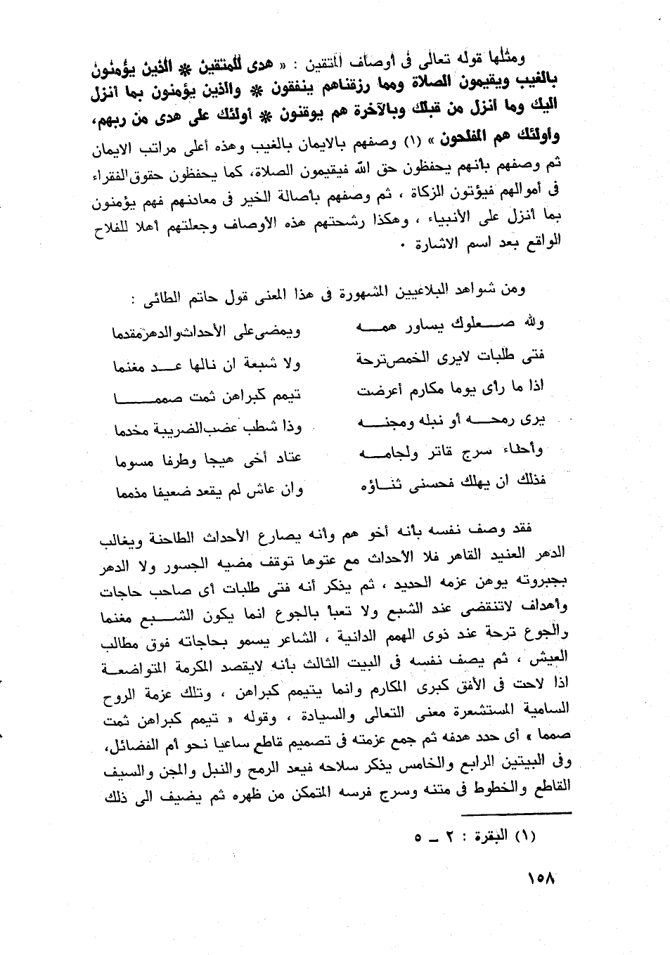 خذ لذلك قوله تعالى: في حكاية قصة سيدنا يوسف عليه السلام مع امرأة العزيز لما استبقا الباب، وسيدنا يوسف عليه السلام يجتهد في الهرب من شيطانها، وألفيا زوجها لدى الباب، وكان ما كان من مشهد الحوار العجيب في نوعه، وانفعالاته بين يوسف والعزيز والمرأة، قال العزيز: لما أيقن بحجة سيدنا يوسف وصدق براءته، وأيقن بتهمة زوجته، قال: {يُوسُفُ أَعْرِضْ عَنْ هَذَا وَاسْتَغْفِرِي لِذَنْبِكِ إِنَّكِ كُنْتِ مِنَ الْخَاطِئِينَ} 1، وأراد بقوله: يوسف أعرض عن هذا، اكتم هذا الأمر ولا تتحدث به صيانة لعرضنا وشرفنا في قومنا، ثم قال لامرأته: "استغفري لذنبك"، وكان رجلا حليما، وقيل: كان قليل الغيرة، والشاهد حذف حرف النداء، وله هنا رمز لطيف، وكأنه يهمس بهذا الخبر في أاذن يوسف محاذرًا أن يسمعه أحد، ثم فيه تقريب، وملاطفة ليوسف عليه السلام، وإيماء خفي بأن الخبر كله يجب أن يضمر في السرائر، وألا يجري به لسان، وكان المجتمع المصري في فجر التاريخ مجتمع سيادة وشرف وثراء وملك ونعمة، وقيم وأخلاق، وكل هذا تراه في هذه السورة التي هي كنز مصر القديم، ولاحظ أن يوسف بن يعقوب بن إسحاق بن إبراهيم عليه السلام، وكان بينه وبين نوح أسماء معدودة، ونوح هو آدم الثاني؛ لأنه لم يبق من ولد آدم بعد الطوفان إلا من كان من نصله، وهذا مرادنا بفجر التاريخ، ثم تأمل حال البلاد الآن، وكيف حال حالها في يد العصابات، وقطاع الطرق وعد إل حذف جزء الكلمة.