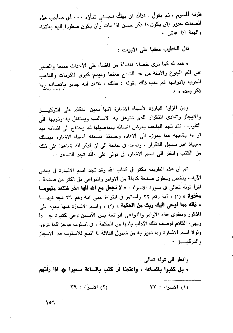 هذا: وقد كانت على ألا أذكر هذا النوع من الحذف؛ لأنه لم يرد في كتب الأئمة كما ذكرته، ومع ثقتي بضرورة الاستجابة لهواتف النفس، وإن خالفت فإني لحذر جدا عند القول بالمخالفة، حتى عند هذه المسائل الهينة التي تشبه ما نحن فيه، والذي أغراني بمخالفة الحذر الواجب هو ثقتي بفهم القارئ، وخاصة أن مثل هذه الدراسة إنما نقدمها لقارئ له خبرة بالحقل، وله رأيه المستقل، أو هو بصدد أن يكون كذلك، فهو يقبل ما يرضاه ويرفض خلافه، وليس ثمة كلام يجب قبوله، والإذعان له إلا ما تجده بين دفتي المصحف، وما صح عن رسول الله صلى الله عليه وسلم، وما عداهما فهو اجتهادات بشر غير معصومين، وأخذ منه ما نأخذ، وندع ما ندع في حدود الفهم والجد، ولهذا خفت التبعة على الباحثين؛ لأنهم يقولون ما يعالجون في نفوسهم، وللقارئ أن يلقي به جملة في ساحة الإهمال، وهي جد فسيحة، ولولا هذا لأطبقت الأفواه على الألسنة حتى تيبس؛ لأنه ليس هناك ضمير حي يتحمل إشاعة الخطأ، وبث الضلالة في أرض الله إلا من أذن بحرب من الله، وإني به سبحانه لمن العائذين.