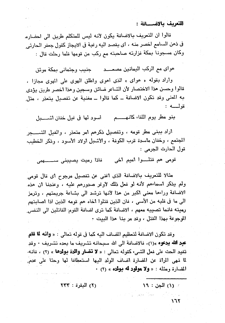 ذكر الشاعر أنه أبصر الطلل فأحزنه وشجاه، ثم شبهه بخط كتاب في سعف نخلة، ثم استأنف ذكر الطلل مرة ثانية استئنافًا قص فيه معنى جديدًا عرف فيه الطلل وذكر لهوه فيه، وهذا الاسئناف مبني كما ترى على حذف المسند إليه؛ لأن التقدير هي ديار أو تلك ديار.