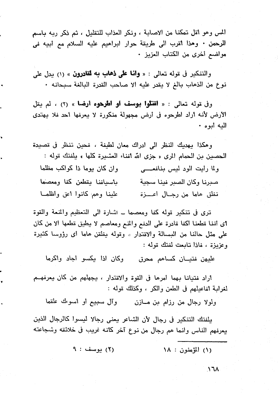 وإذا راجعت النظر في هذه الأبيات بان لك فيها أنها قبل القطع الذي هو في بيت الشاهد تدور حول الحوار الذي كان بين الشاعر وبين عميلة، ثم وصفه قبل بيت الشاهد بأنه ماجد، والوصف فيه إحساس بصدق مجده، فقد تردى ثايبا من المجد سابغة الذيل واتزر، فهو في فيوض من المجد، وليس كامن يستعير ثيابا من المجد، ثم جاء الاستئناف، وفيه الذي قدمناه من الأوصاف المهمة في السياق، وراجع هذه الأبيات وتفقدها صورة صورة وكلمة كلمة، وكيف يكون الشموخ في النفس والشعر.