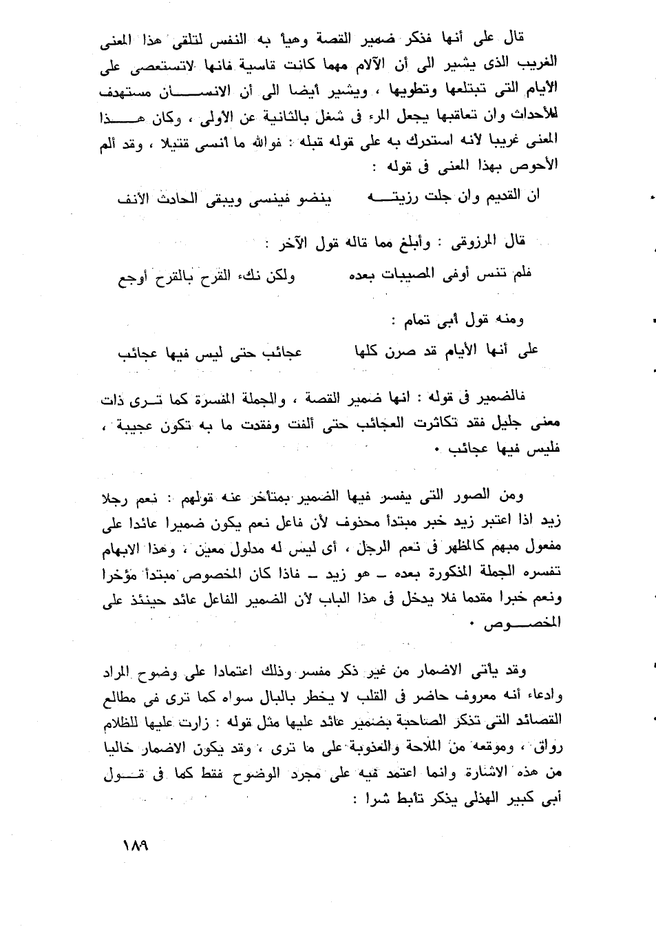 فالشاعر يحرص هنا أيضا على ذكر المسند إليه، لأن ذلك ضروري في سياق الشعر، حيث يقصد إلى قرنه قرنا واضحا بهذه المثالب الكثيرة.
