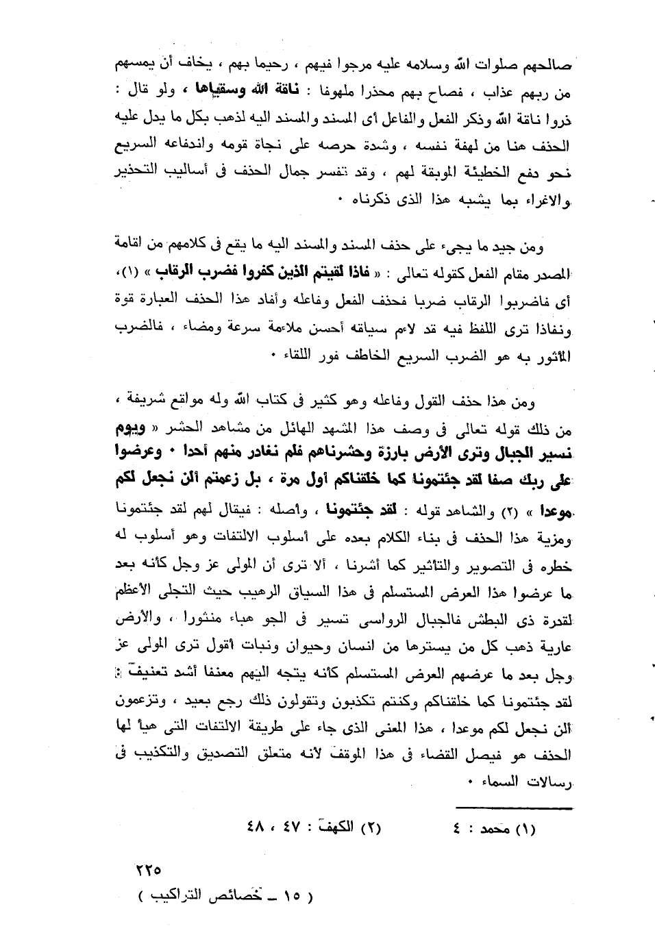 بالعابدين والمعبودين، وأنه -صلى الله عليه وسلم- يدعوهم لكيده في أسلوب متهكم لاذع يثير الحمية، وقد أشار إلى القوة التي تدفع عنده، وتجعله يعارضهم هذه المعارضة قال: {إِنَّ وَلِيِّيَ اللَّهُ الَّذِي نَزَّلَ الْكِتَابَ} ، فساق الكلام مؤكدا بما ترى ليشعرهم بوثوقه فيه، وأنه يقوله مع موفور الثقة، ومتين الاعتقاد، وأنه نفسه ممتلئة بهذا اليقين، ولهذا جاء قوله: {وَهُوَ يَتَوَلَّى الصَّالِحِينَ} بهذا التوكيد، ليلائم هذا السياق الذي يقرر لهم فيه الرسول حال يقينه في وثاقته بربه، وهو يعارضهم تلك المعارضة التي لا تبالي بهم ولا بمقدساتهم، ثم رتاه يذكر بعد ذلك قوله: {وَالَّذِينَ تَدْعُونَ مِنْ دُونِهِ لَا يَسْتَطِيعُونَ نَصْرَكُمْ وَلَا أَنْفُسَهُمْ يَنْصُرُونَ} 1، فأشار إلى ما يقابل ثقته في ناصره سبحانه من عجز آلهتهم عن نصرهم، إذن لو قال: ويتولى الصالحين هكذا كلاما خاليا من التوكيد لنبأ عنه معناه.