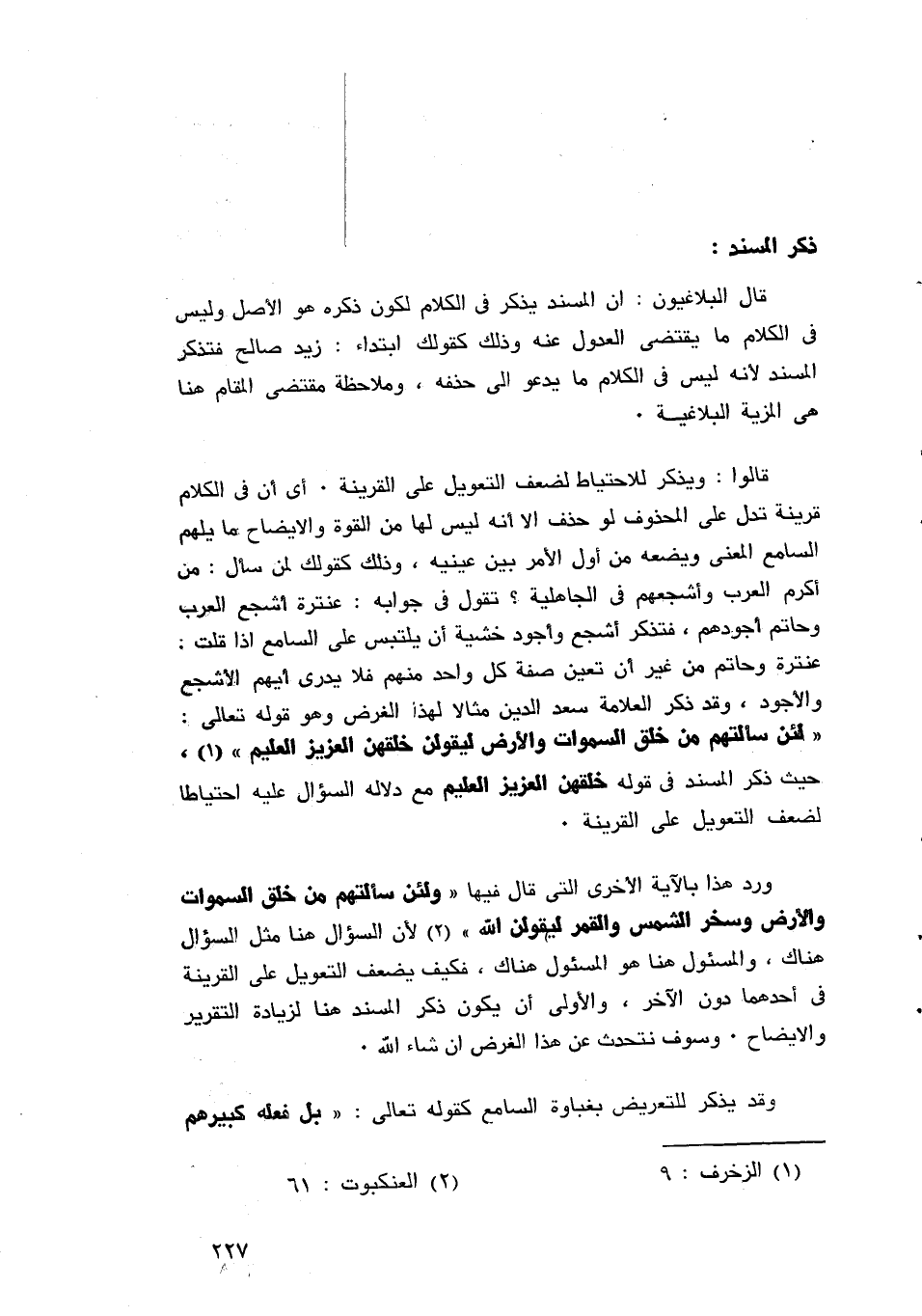 وقد قدمناه أن قوله: "ونحن كفيناك الأمور"، يفيد التقديم فيه الاختصاص؛ لأنه أراد أن يقول له: لم يكفكم الأمور سوانا، وانظر قول المعذل: هم خلطوني بالنفوس، تجد أن تقديم المسند إليه يعني أنه لم يفعل ذلك سواهم، وذلك واضح فيه، وفي البيت الثاني هم يفرشون اللبد لا يصح فيه إرادة هذا المعنى كما سبق، فالمسألة ترجع إلى الإدراك الدقيق للمعنى، والإدراك الدقيق لملاءمة