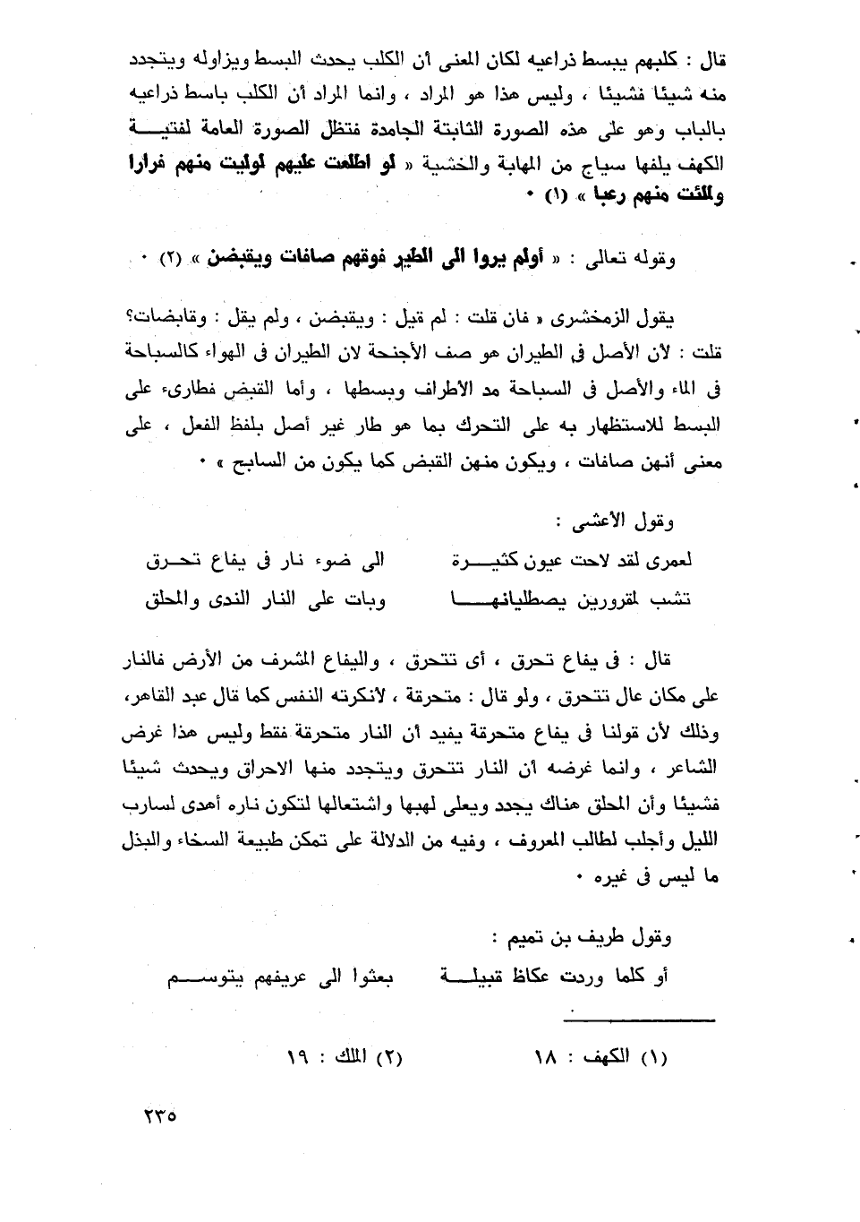 ومثله قول القبعثري الشيباني للحجاج لما قال له: لأحملنك على الأدهم، يريد القيد قال له: "مثل الأمير يحمل على الأدهم والأشهب"، وأراد أنت حمل على الفرس الأدهم والأشهب، فقوله: مثل الأمير أراد به الأمير، ولم يرد أن يعرض بآخر لا يفعل فعله.