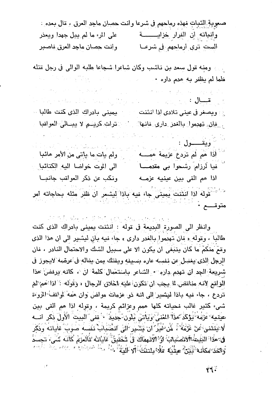 تجد الشاعر يجري الكلام على طريقة المخاطب في قوله: "بكيت كما يبكي الوليد"، وقد أراد نفسه، وفي البيت الآخر يقول: "بكل تداوينا فلم يشف ما بنا"، واضح أن البيت يضعف لو قال: بكل تداويت وأجراه على أسلوب الخطاب؛ لأنه يصف ما يجده مع هذا الدواء الذي زعموا أنه يشفي من