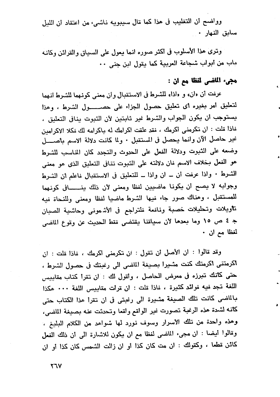 التعبير بالماضي عن المستقبل في هذا السياق تجاوز الزمن وطواه، فدارت بنا الأحداث، ووقفنا مع الواقفين، ووفيت نفوسنا ما عملت، ولم أجد مثل هذا في كلام الجاهليين أعني لم أجد اللغة في بيانهم قد انتزعت مشهدا متزاحما كهذا المشهد انتزعته من الزمن المقبل، وأدارته بأفاعيلها إلى زمن مضى، وكأنها أحداث قد تقضت، وانقضت كما ترى في الآية الكريمة، وكانت الصور الزاخرة عندهم هي صور حيوانات الصحراء، وصراعاتها أما مثل هذا فلا وجود له في شيء من كلامهم، والمهم أنك لا ترى في تقرير الحقائق أبلغ من هذا التعبير، ثم إن هذه الحقائق كما ترى لها أهمية كبيرة في العقيدة، وهي موضع مجاذبة؛ لأنها معتقدات بغيب فهي صور غريبة على النفوس الأرضية التي لا تؤمن إلا بما يدنو من حسها، ورؤاها مما يدور في آفاقها المحدودة.