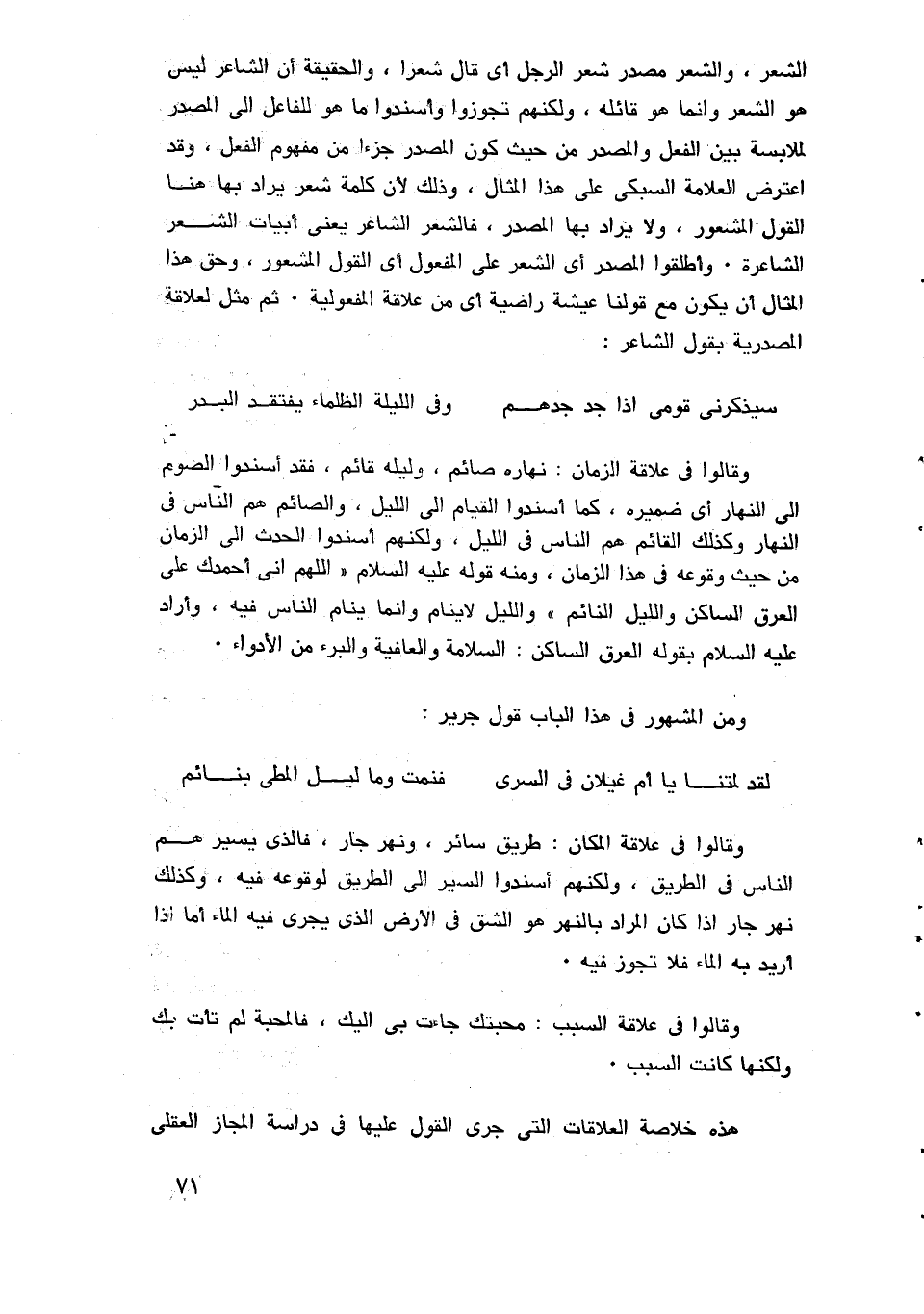فحين يكون المقام داعيا الى التنويه برجل تتحدث عنه، أي حين تنفعل نفسك بمآثره وأخلاقه تقول: هو الرجل، فتذكره معرفا بهذه الأداة التي تكسبه في سياق العناية به وصف الرجولة الصادقة والكاملة، وكأنك توهم أن الرجولة بكل أوصافها، تتحقق فيه ويشتهر بها، حينئذ نقول: إن التعريف جاء مطابقا لمقتضى الحال أي مقتضى المقام: لأن المقام يتطلب التنويه، والإشادة لما هتفت دواعي النفس بذلك، فوقع الكلام وفيه خصوصية تعين على إفادة هذا المعنى، ومثل ذلك أنك تجد الطريق، وقد ملأه الناس سائرين فيه، فيقع في نفسك أن هذا الطريق كأنه هو الذي يسير، فلا تقول: سار الناس في الطريق، وإنما تقول: سار بهم الطريق، والتعبير الثاني أكثر ملاءمة لحالة نفسك التي أحست، أو خيل إليها أن الطريق سير، لا أريد لك أن تكذب في التعبير، وأن تدعي أنك تحس هذا، وإنما أقول لك: إنك حين تحس أن الطريق يمور، ويتحرك يكون قولك: سار بهم الطريق، مطابقا لما يتطلبه حال النفس الداعي إلى الوصف الصادق، وإذا قلت: سار الناس في الطريق، لا تكون العبارة مستوفية لإحساسك بكثرة السير حتى كأن كل بقعة في الطريقة عليها إنسان يسير، والعبارة إذن ليست مطابقة لمقتضى الحال، وعكس هذا إذا كنت