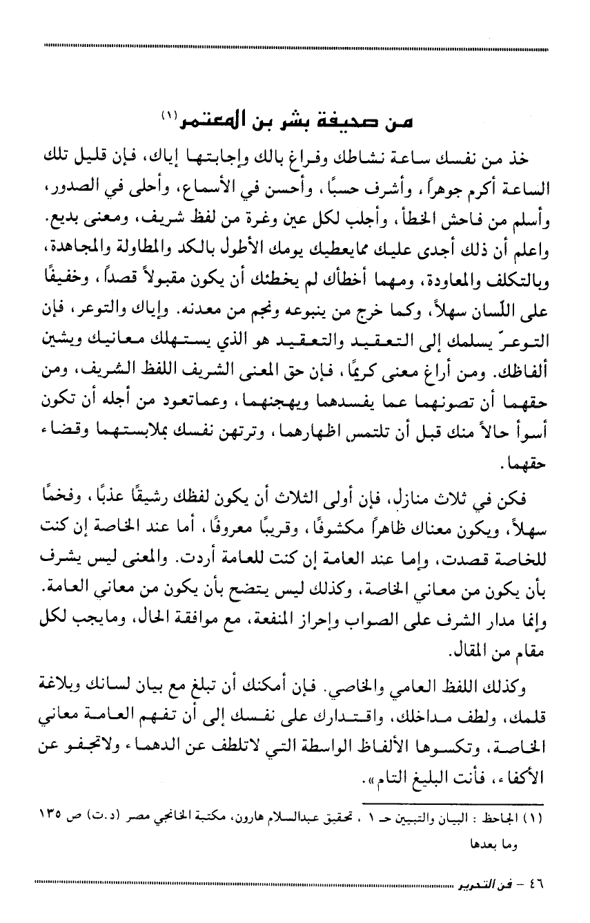 1 الجاحظ: البيان والتبيين ج1. تحقيق عبد السلام هارون، مكتبة الخاجي مصر د. ت ص135 وما بعدها.