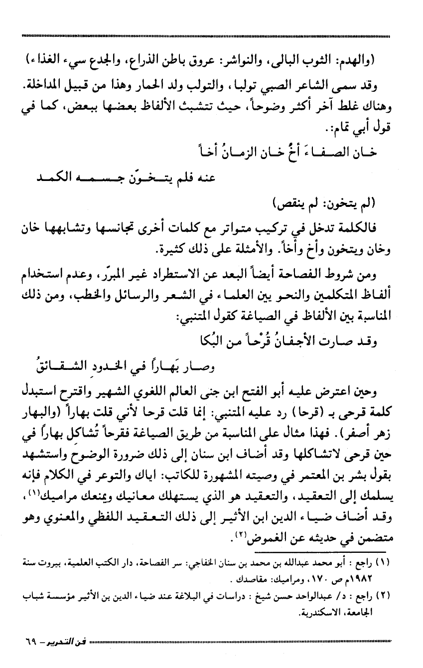 1 راجع: أبو محمد عبد الله بن محمد بن سنان الخفاجي: سر الفصاحة، دار الكتب العلمية، بيروت سنة 1982م ص170 ومراميك: مقاصدك.