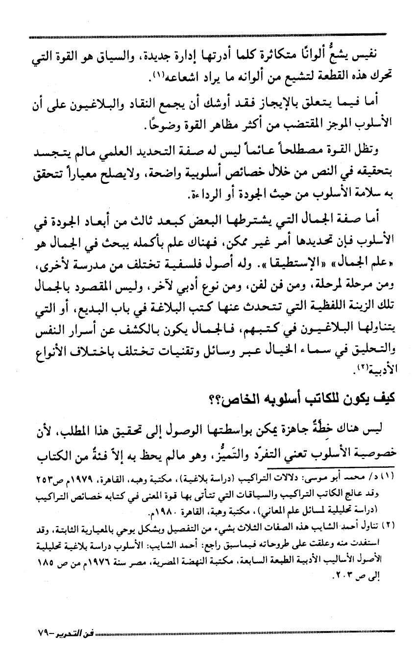 2 تناول أحمد الشايب هذه الصفات الثلاث بشيء من التفصيل وبشكل يوحي بالمعيارية الثابتة، وقد استفدت منه، وعلقت على طروحاته فيما سبق راجع: أحمد الشايب: الأسلوب دراسة بلاغية تحليلية الأصول الأساليب الأدبية الطبعة السابعة، مكتبة النهضة المصرية، مصر سنة 1976م من ص 185 إلى ص 203.