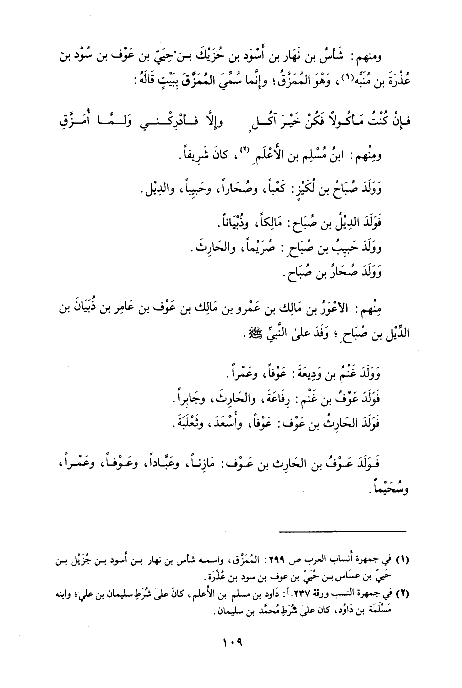 ومنهم: ابن مُسلِم بن الأَعْلمَ، كان شريفاً وولدَ صُبَاح بن لُكيْز: كَعْباً، وصُحَاراً، وحَبِيباً، والدِيْل.