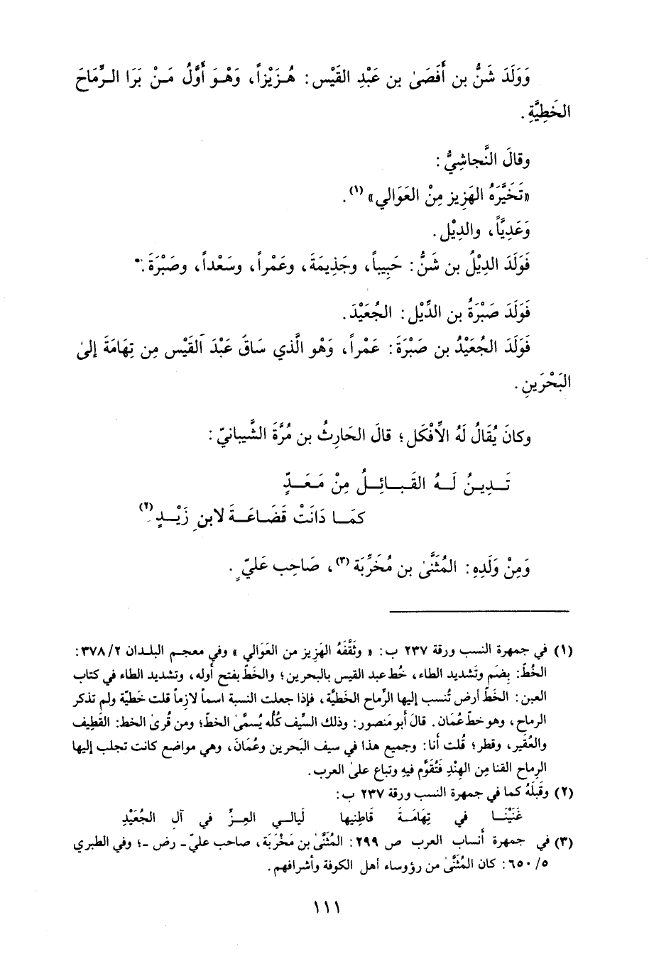 وولَدَ شنُّ بن أفصى بن عَبْد القَيْس: هُزيزاً، وهو أول من برا الرِماح الخطية.