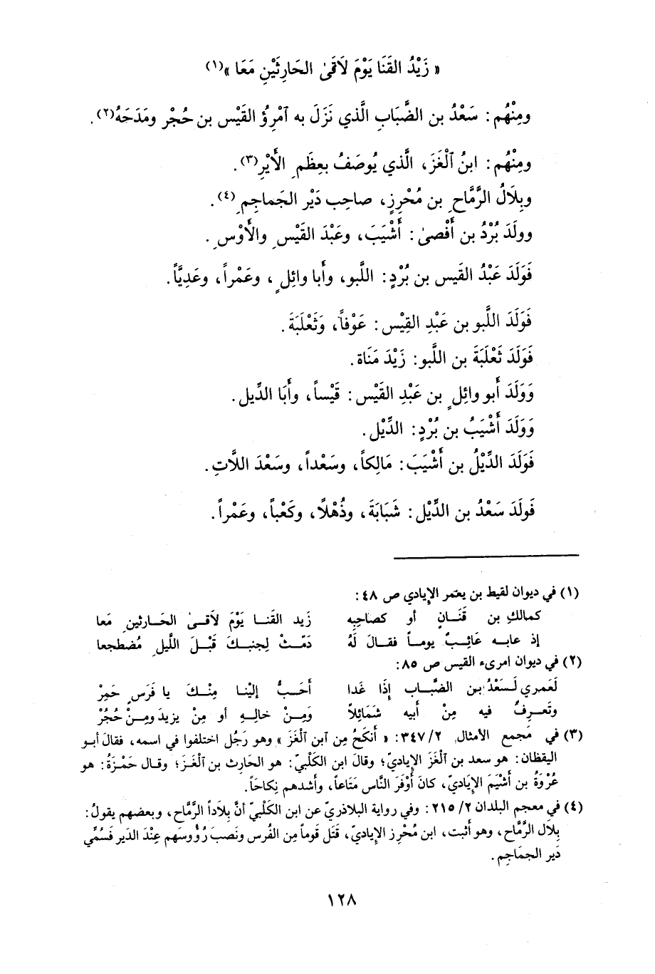زَيْدُ القَنَا يَوْمَ لاَقى الحَارِثينِ مَعَا ومنهم: سَعْدُ بن الضَّبابِ الذي نَزلَ به أمْرؤُ القَيْسَ بن حُجْر ومَدَحهُ.