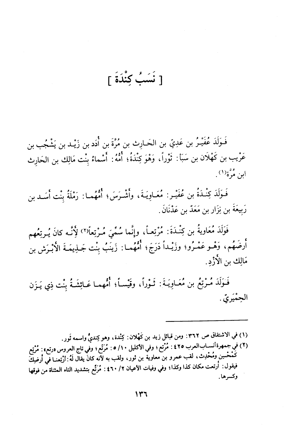 فَوَلَدَ عُفَيْر بن عَدِي بن الحَارِث بن مَرَّةَ بن أُدد بن زَيْد بن يَشْجُب بن عَرِيب بن كَهْلان بن سَبَأ: ثَوْراً، وهو كِنْدَةَ؛ أُمه: أَسمْاءُ بنت مَالِك بن الحَارِث أبن مُرَّة.
