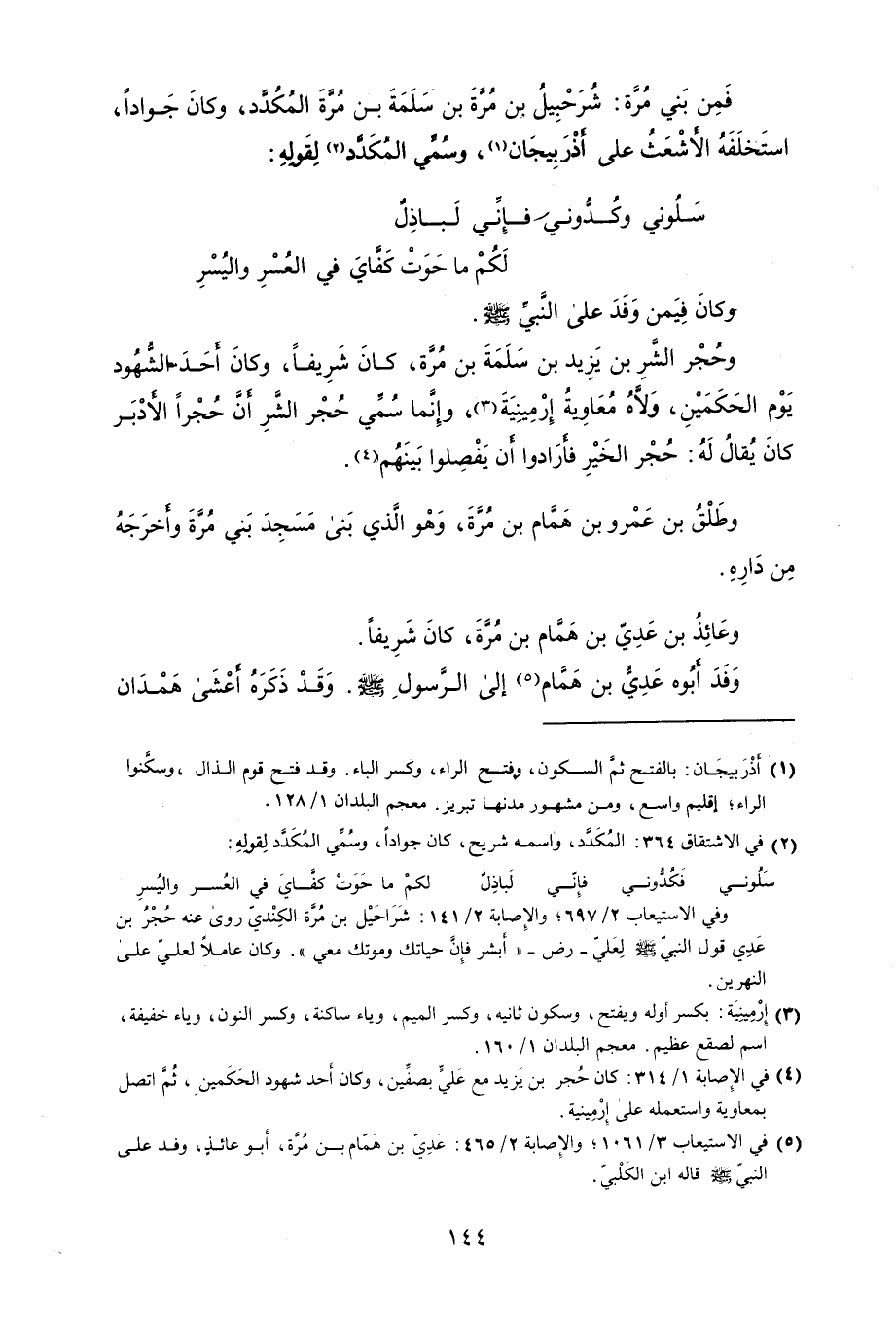 فمن بني مُرَّة: شُرَحْبِيل بن مُرَّة بن سَلَمَةَ بن مُرَّة المُكّدَّد، وكان جواداً استخلفه الأّشَعْثُ على اذربيجان، ويُسمى المُكّدَّد لقوله: