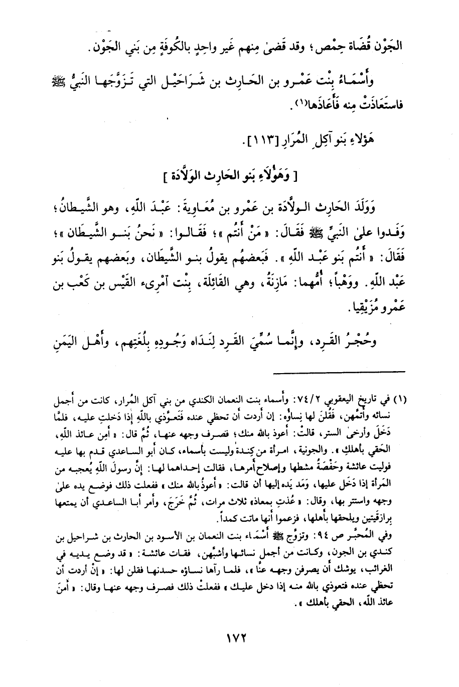 وولَد الحَارِث الولاَّدَة بن عَمْرو بن مُعاوِية: عَبْد الله، وهو الشَّيطان؛ وفدوا على النبي (فقال: مَنْ أَنتُم؛ فقالوا نَحنُ بنوالشَّيطان؛ فقال: أَنتُم بنوعَبْد الله. فبعضهم يقول بنو الشَّيطان، وبعضهم يقول بنوعَبْد الله. ووَهْباً؛ أُمهما: مَازِنةَ، وهي القائِلة، بنت آمرِىء القَيْس بن كَعْب بن عَمْرو مُزيْقياً.