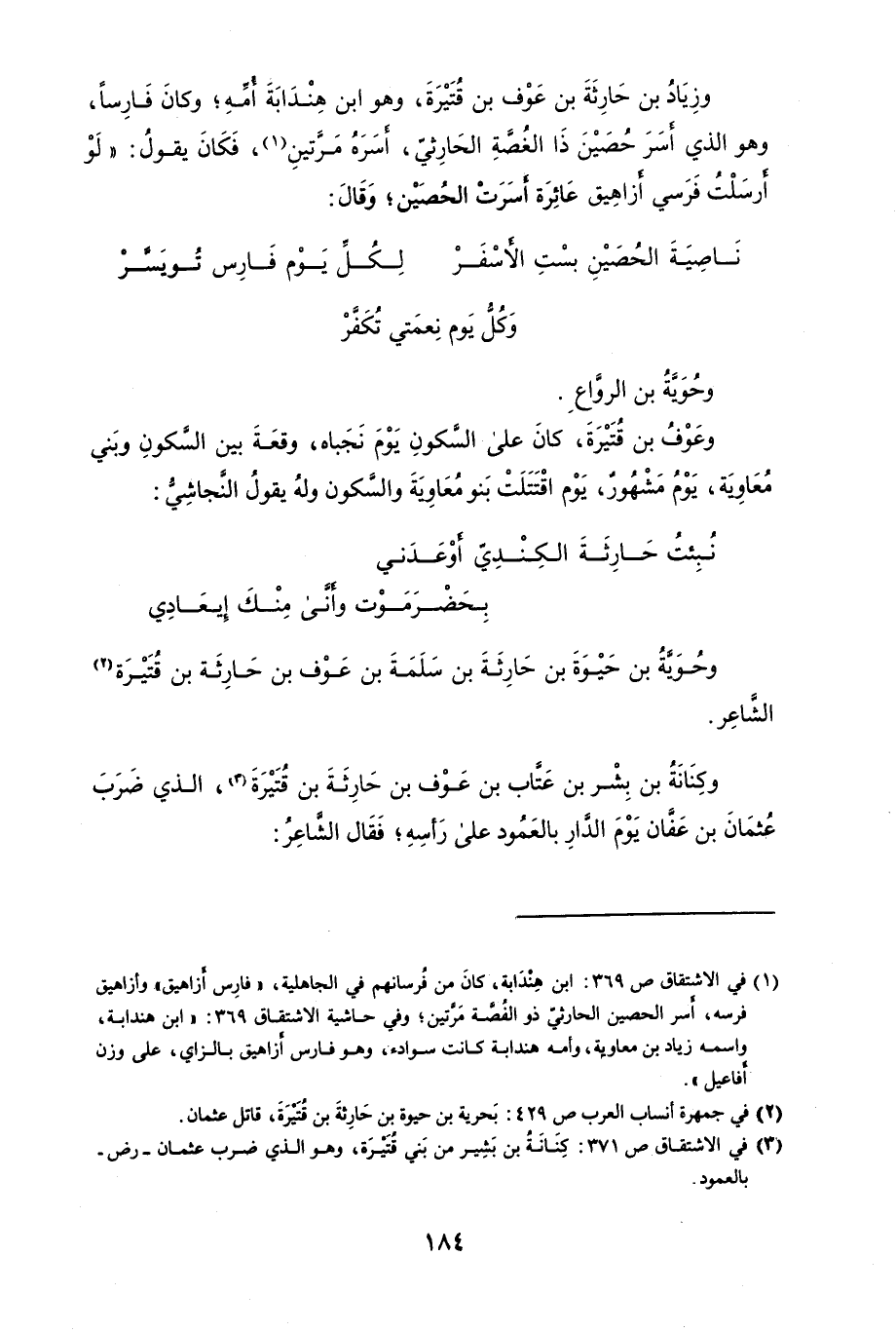 زيادُ بن حَارثة بن عوْف بن قُتيرةَ وهو ابن هنْدابةِ، وكان فارساً، وهو الذي أسَر حُصين ذا الغُصةِ الحارِثيّ، أسرهُ مرِّتين، فكانَ يقولُ: لوُ أرسلتُ فَرسيَ أزاهيق عَائرة أسرتْ الحُصيْن، وقال: