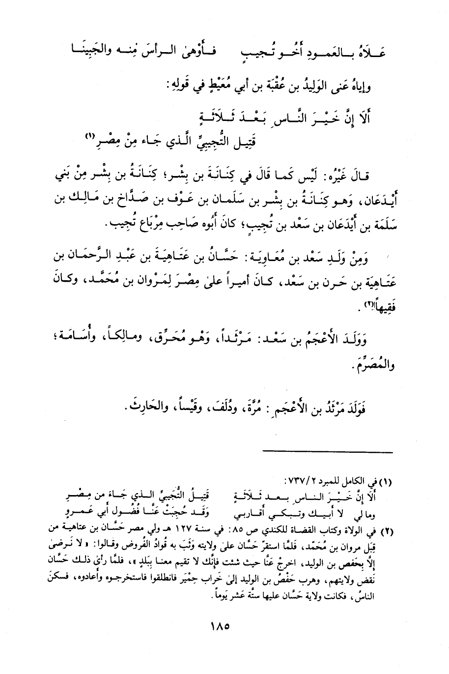 ألاَ إنَّ خَيْرَ النَّاسِ بعْدَ ثلاَثَةٍ ... قَتِيل التَّجيبيَّ الَّذي جَاء منْ مِصْرِ