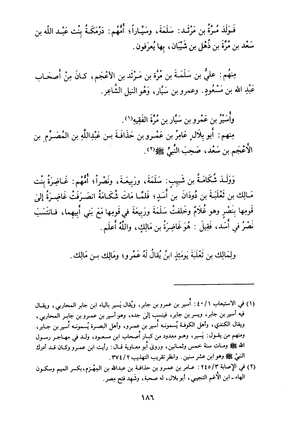 منهم: أًبو بِلال عَامر بن عُمْرو بن حَذَافَةَ بن عبد الله بن المُصَرَّم بن الاعْجَم بن سَعْد، صَحِبَ النبي (.