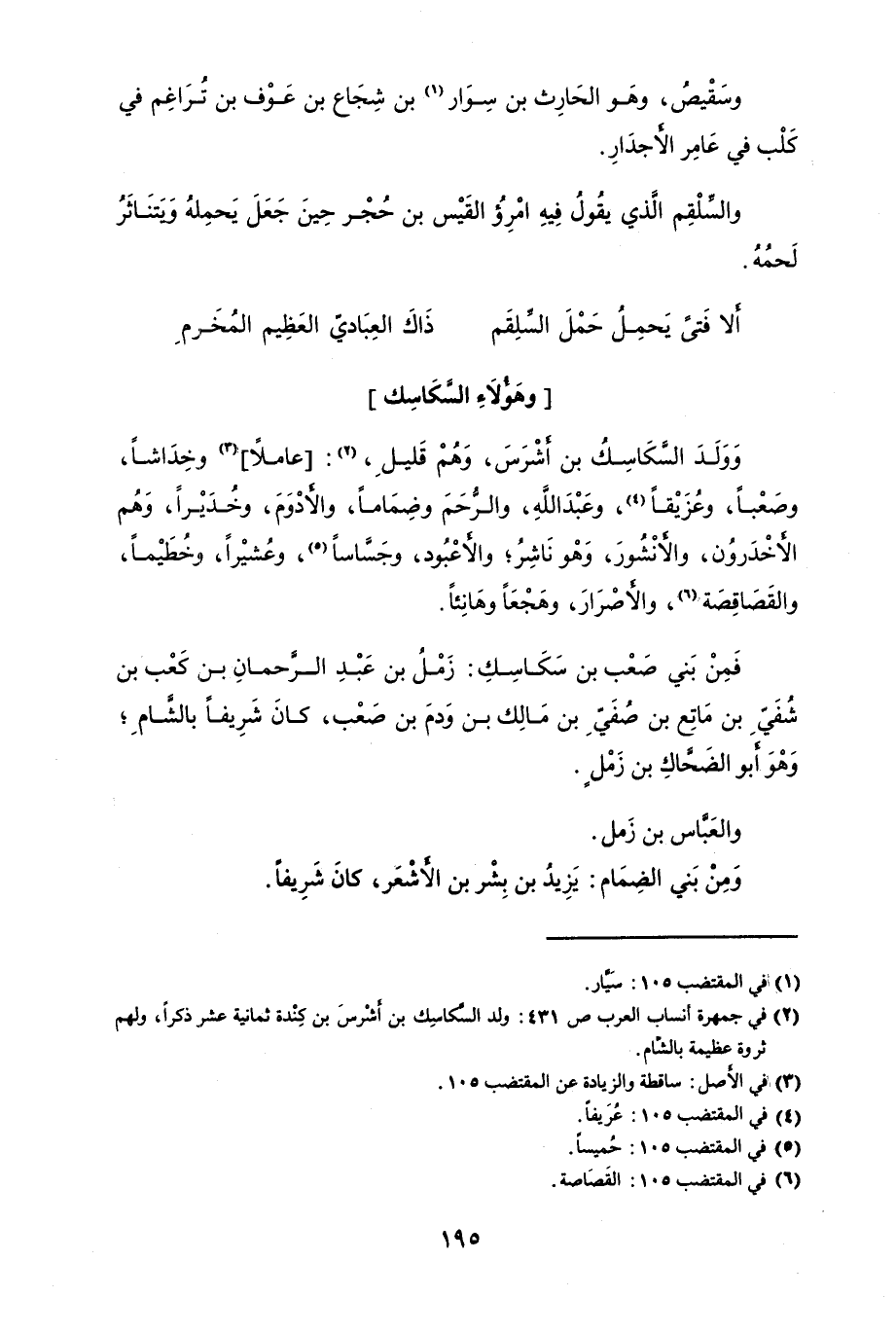 وولد السَّكَاسِكُ بن أَشْرَسَ، وهم قَليل، وخِدَاشاً، وصَعْباً، وعُزَيْقاً، وعَبْد الله، والرُّحَمَ وضِمَاماً، والأَدْوَمَ، وخُدَيْراً، وهم الأَخْدَروَن، والأَنْشُورَ، وهو نَاشِر، والأَعْبُدو، وجَسَّاساً، وعُشيْراً، وخُطَيْماً، والقَصَاقِصَة، والأصْرَارَ، وهَجْعَاً وهَانِئاً.