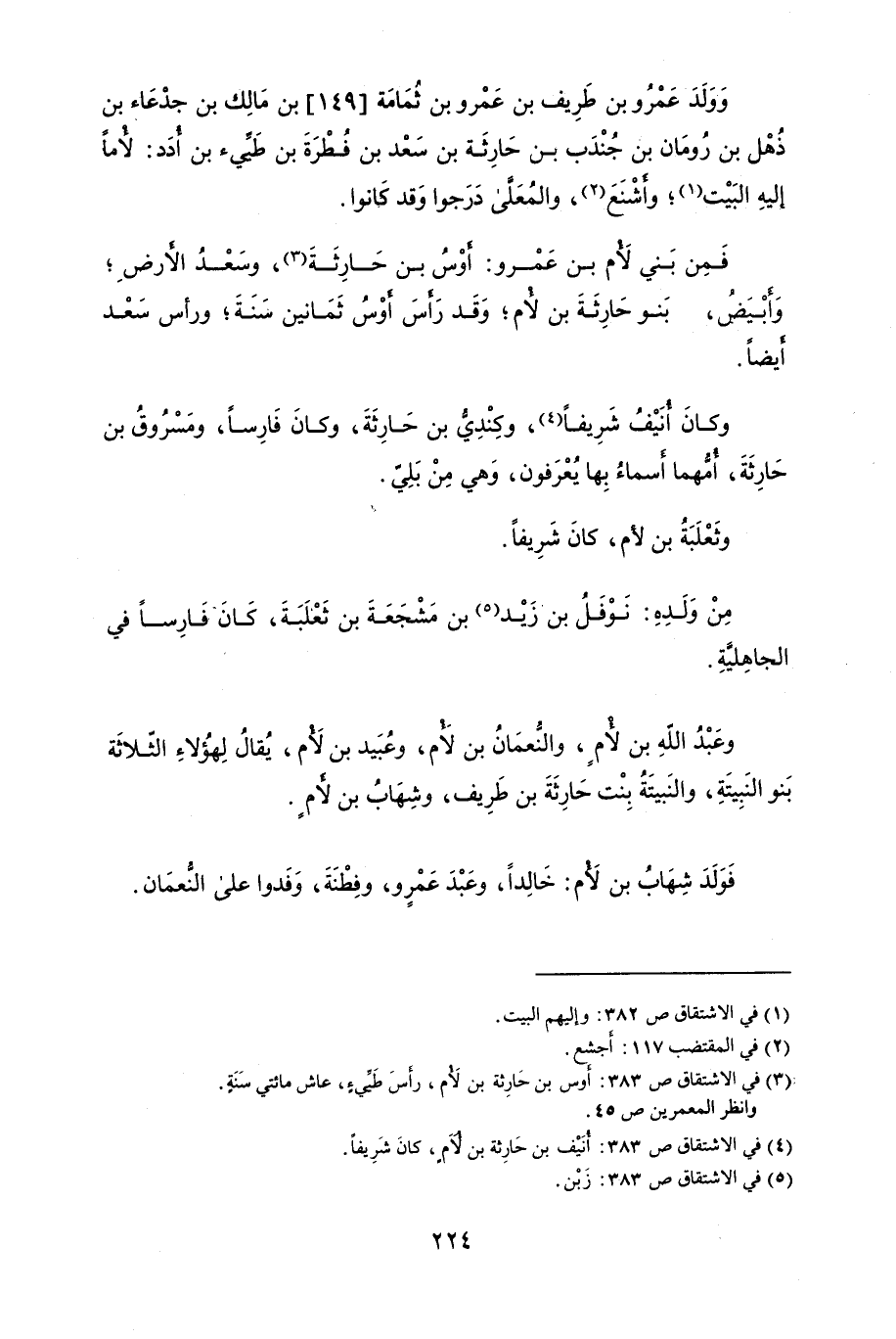 وَوَلَدَ عُمُرّو بن طَرِيف بن عُمُرّو بن ثُمَامَةَ بن مَالِك بن جَدْعَاء بن ذُهْل بن رُومَانُ بن جُنْدَب بن حَارِثَةَ بن سَعْدُ بن فْطْرَةَ بن طَيَّيءُ بن أُدَدٍ: لأماً إليه البَيْت، وأَشْنَعَ، والمُعَلّى دَرَجَوا وقد كانَوا.