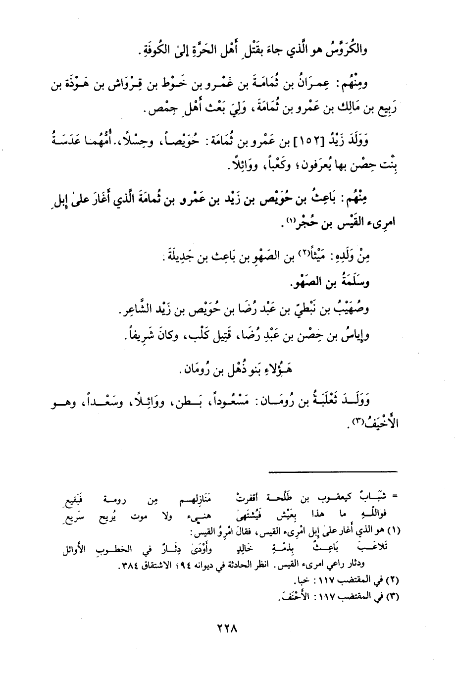 هَؤُلاءِ بَنو ذُهْل بن رُومَانُ وَوَلَدَ ثُعَلُبَةَبن رُومَانُ: مسُعُوَدّاً، بَطن، ووائِلُاً، وسَعْدُاً، وهو الأَخْيَفُ.
