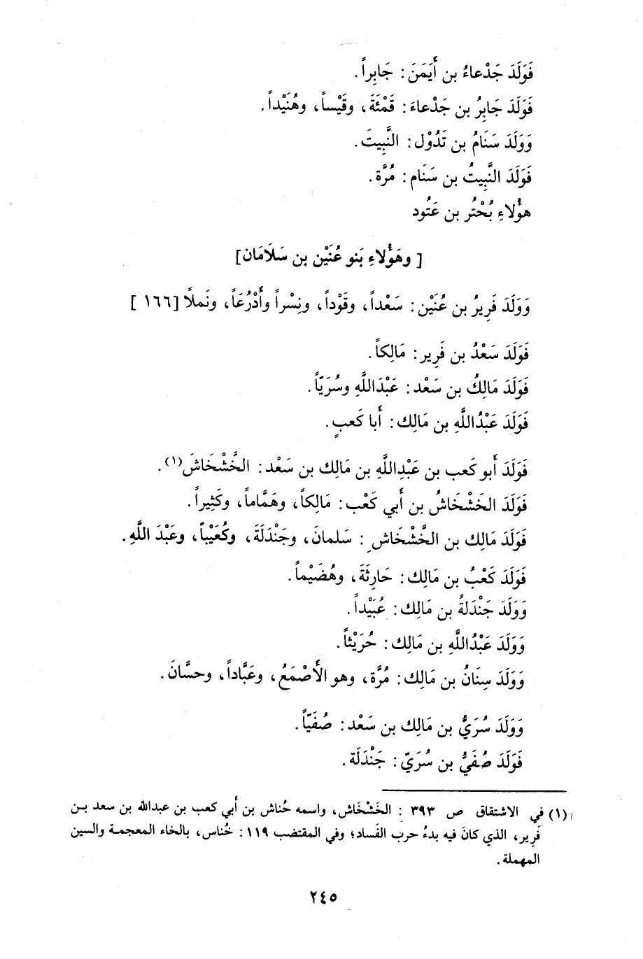 وَوَلَدَ فَرِير بن عُنَيْنُ: سَعْدُاً، وقوَدّاً، ونِسْراً وأَدْرُعاً، ونَملاً فَوَلَدَ سَعْدُ بن فَرِير: مَالِكاً.