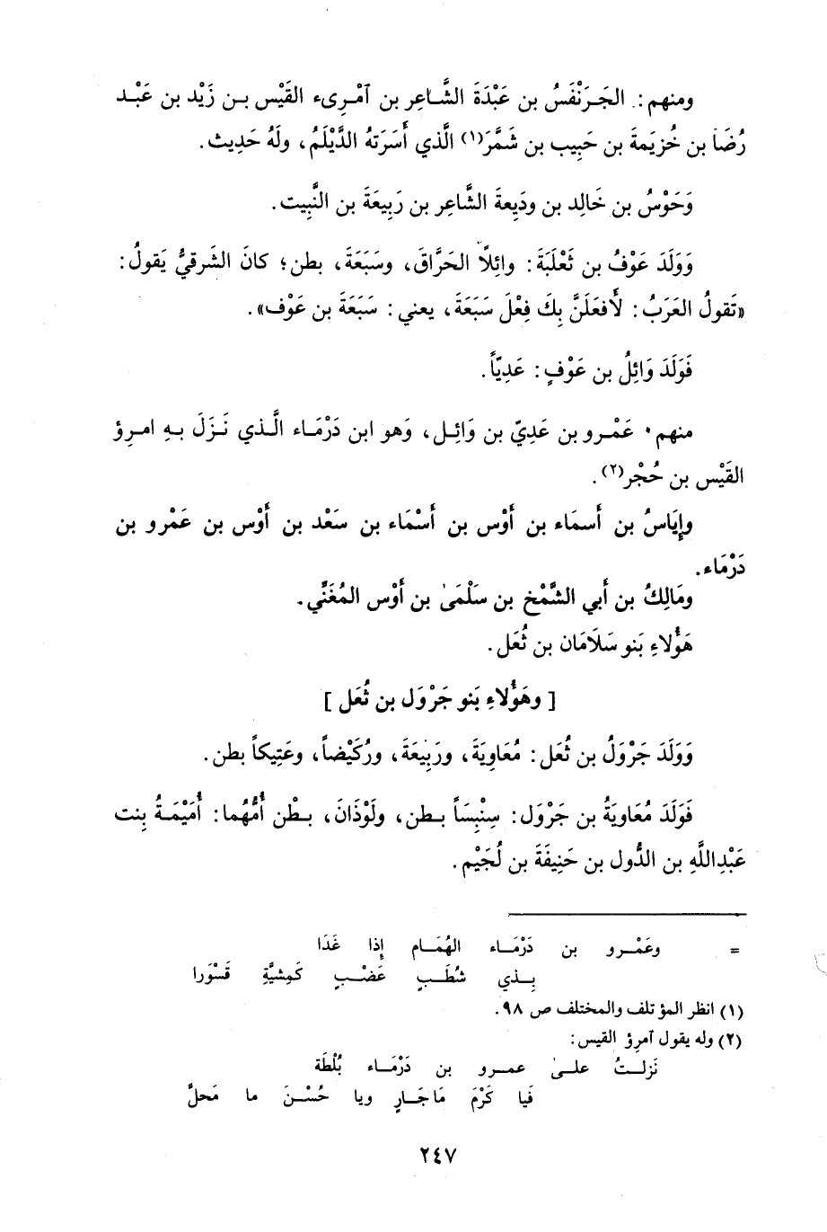 منهم: عُمُرّو بن عَدِيّ بن وائِلُ، وهو أبن دَرْمَاء الَّذي نَزَلَ به امُرّؤ القسي بن حُجْر.