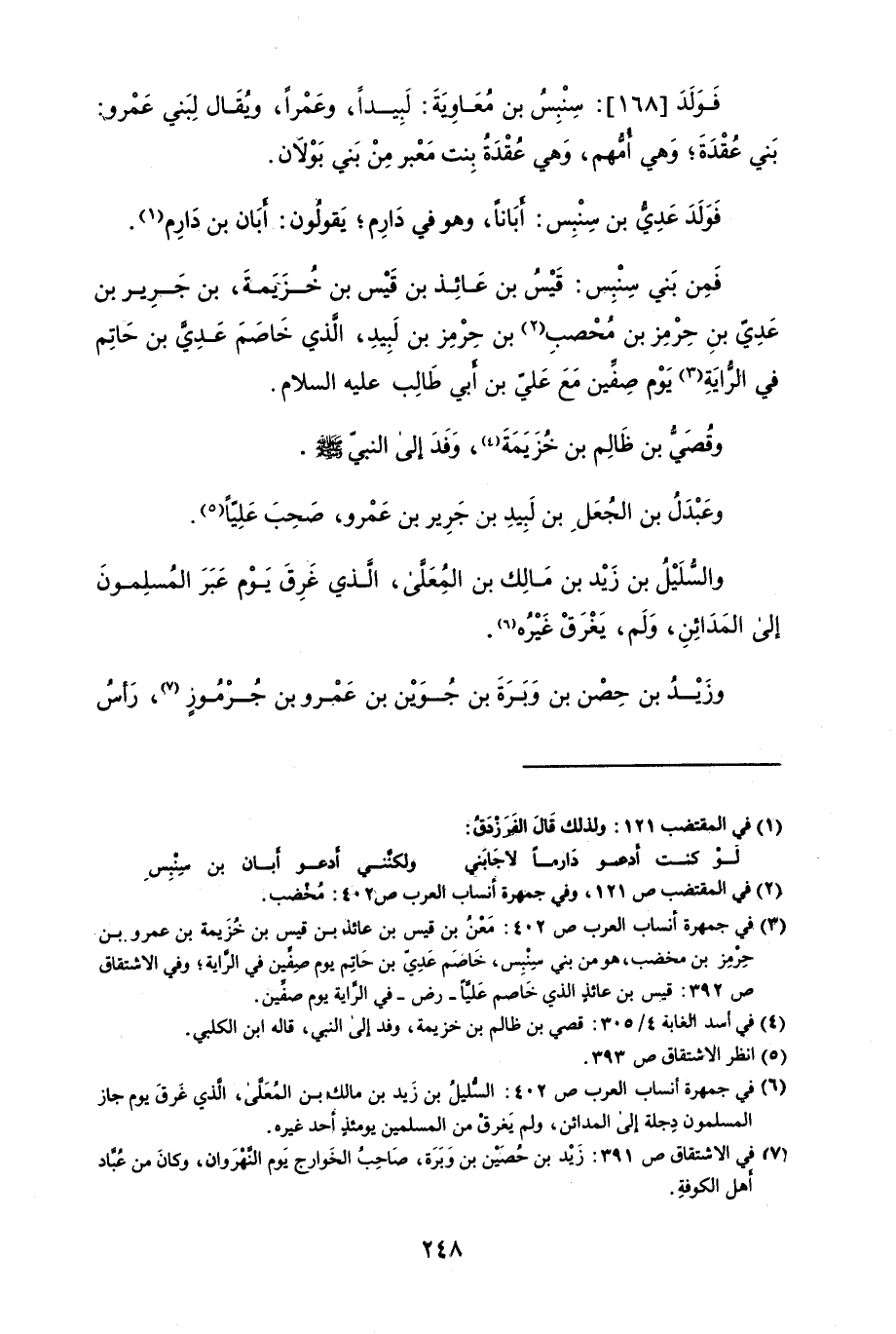 فمن بَني سِنْبِس: قَيْس بن عَائِذ بن قَيْس بن خُزَيمَةَ، بن جَرِير بن عَدِيّ بن حِرْمِز بن مُحْصبِ بن حِرْمِز بن لَبِيِد، الَّذي خَاصَمَ عَدِيّ بن حَاتِم بن الرُّاية يَوْم صُفَيُّن مع عَلِيّ بن أبي طَالِب عَلِيّه السلام.