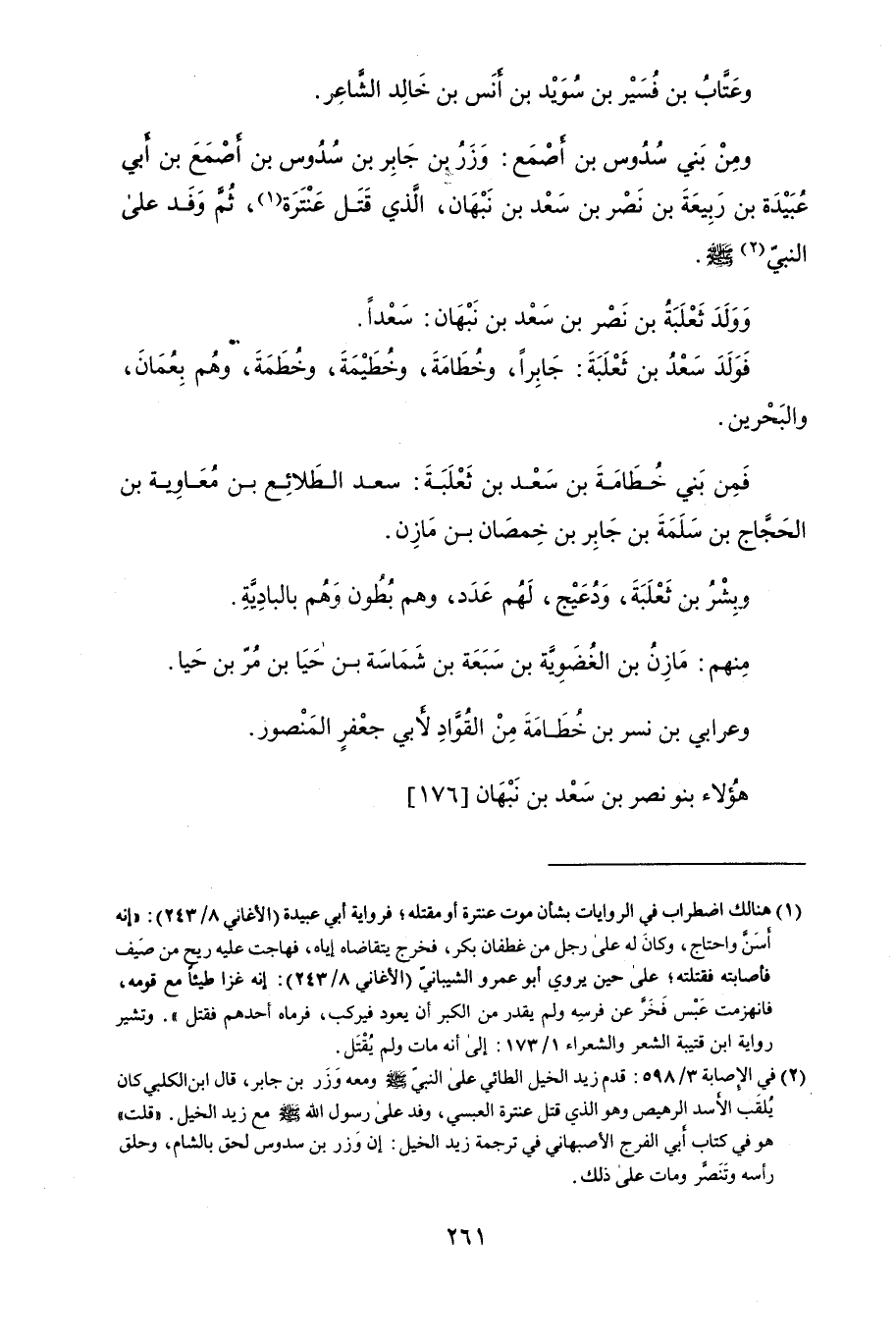ومِنْ بَني سُدُوس بن أَصْمَع: وزَرُ بن جَابِر بن سُدُوس بن أَصْمَع بن أبي عُبِيْدة بن رَبَيعَةَ بن نَصْرُ بن نَبْهان، الَّذي قَتَلَ عَنْتَرَة، ثم وَفَد عَلَى النّبيّ.