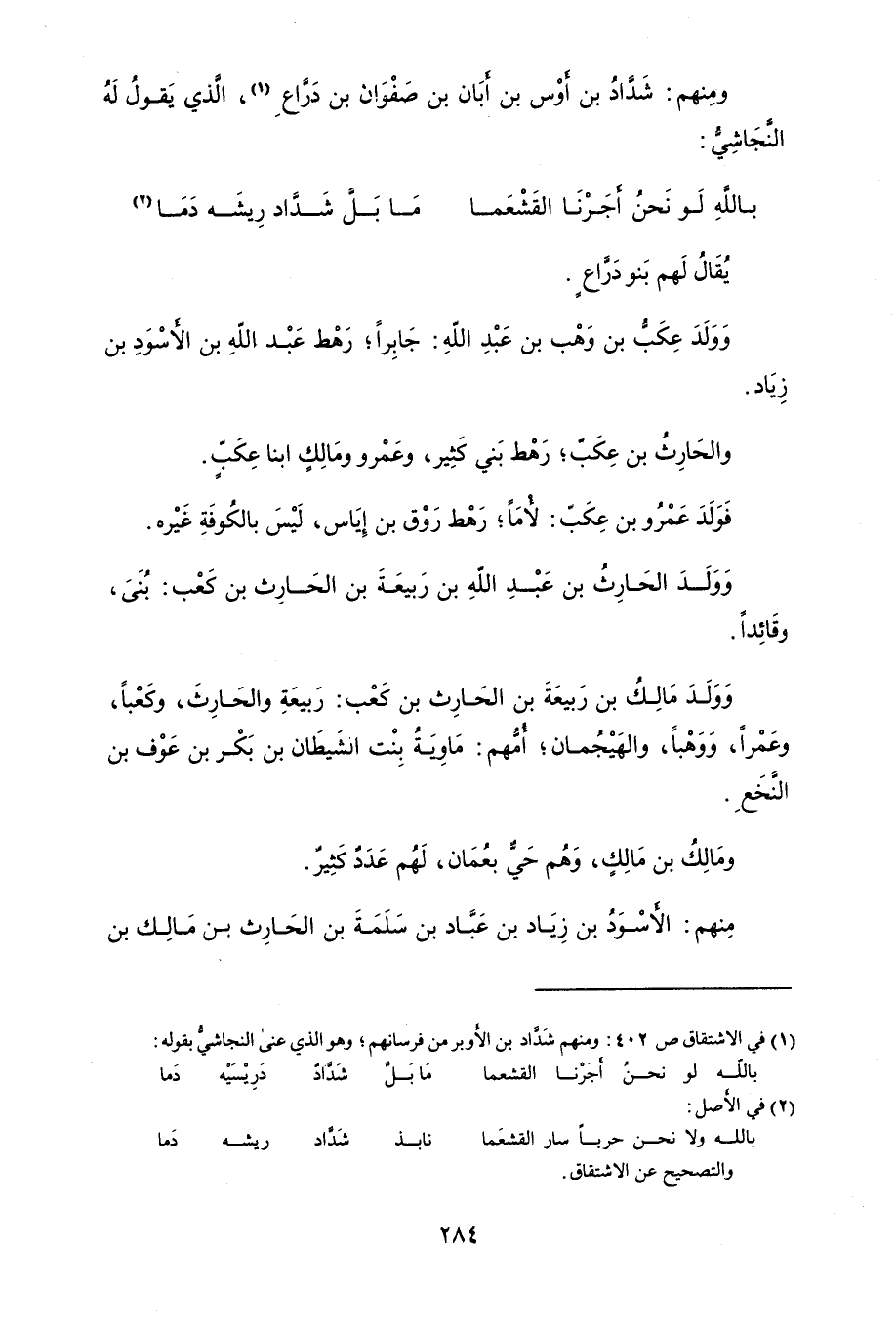 ومنِهم: شَدَّادُ بن أَوْس بن أَبَان بن صَفْوَانُ بن دُرَاع، الَّذي يقولُ لَهُ النَّجاشِيُّ: