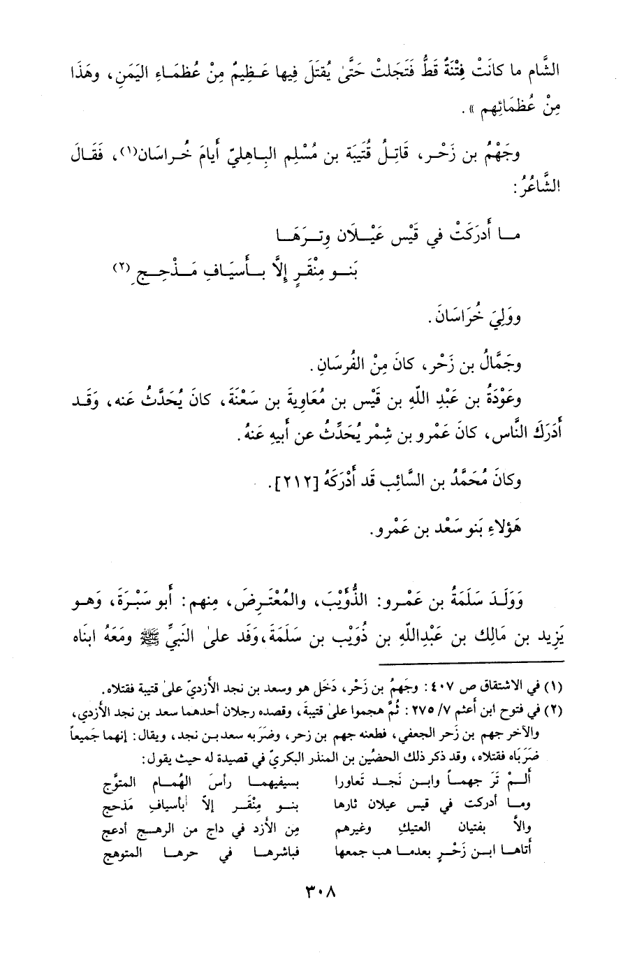 وجَهْمُ بن زَحْر، قَاتِل قُتَيبَة بن مُسْلم البِاهِليّ أيام خرَأسَان، فَقَأل الشَّاعِر: