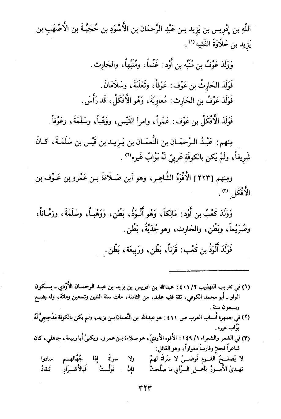َ اللَهُ بن إِدْرِيس بن يَزَيْد بن عَبْدَ الرَّحمَان بن الأَسْوَدُ بن حُجَيَّةُ بن الأَصْهَب بن يَزَيْد بن حَلاَوَةَ الفَقِيه.