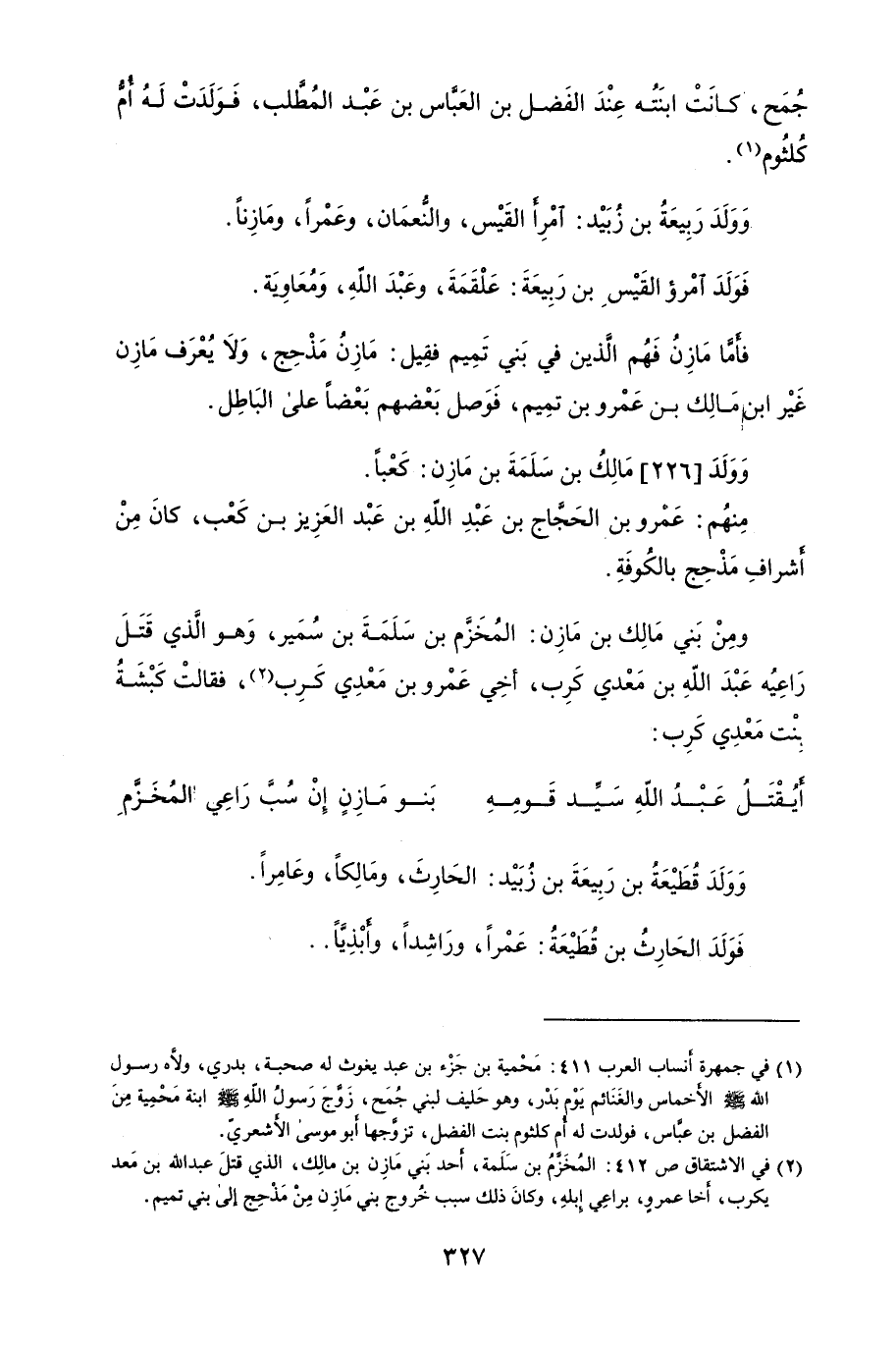 فأَمَّا مَازِنُ فَهُم الَّذين في بَني تَمِيم فقيل: مَازِنُ مَذْحِج، ولا يُعْرَف مَازِنُ غَيْر ابن مَالِك بن عَمْرو بن تَمِيم، فَوَصل بَعْضهم بَعْضاً على البَاطل.