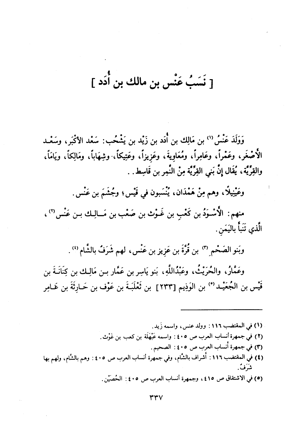 نَسَبُ عَنْسُ بن مَالِك بن أُدَد