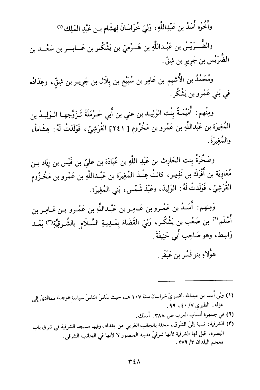 ومنِهم: أَسَدُ بن عَمْرو بن عَامِر بن عَبْدَ اللَهُ بن عَمْرو بن عَامِر بن أَسْلَم بن صَعْب بن يَشْكُر، وَليَ القَضَاءَ بِمَدِينةِ السَّلاَمِ بالشَّرقيَّةِ بَعْد وَاسِط وهو صَاحِب أَبي حَنِيَفَة.