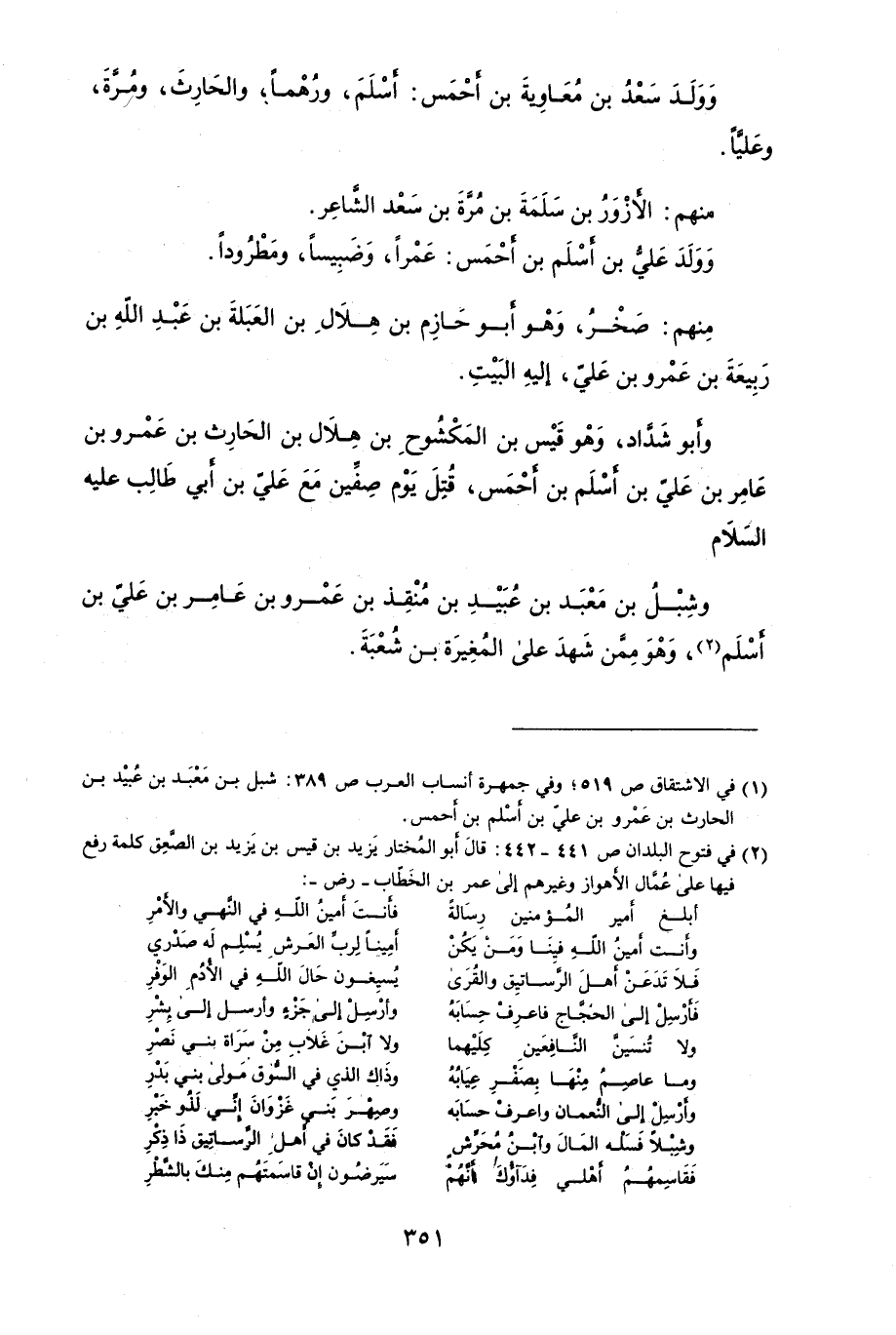 وَوَلَدَ سَعْد بن مُعَاوِيَةَ بن أَحْمَسُ: أَسْلَمَ، ورُهْماً، والحَارِثَ، ومُرَّةَ، وعَليَّاً.