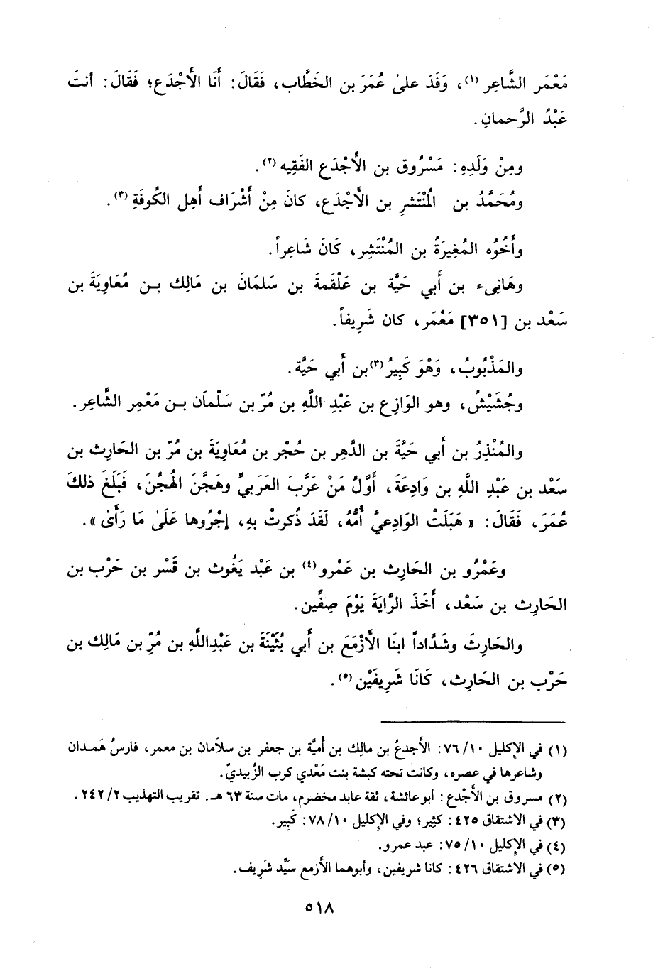 ومن ولدهِ: مسروق بن الأجدع الفقيه.