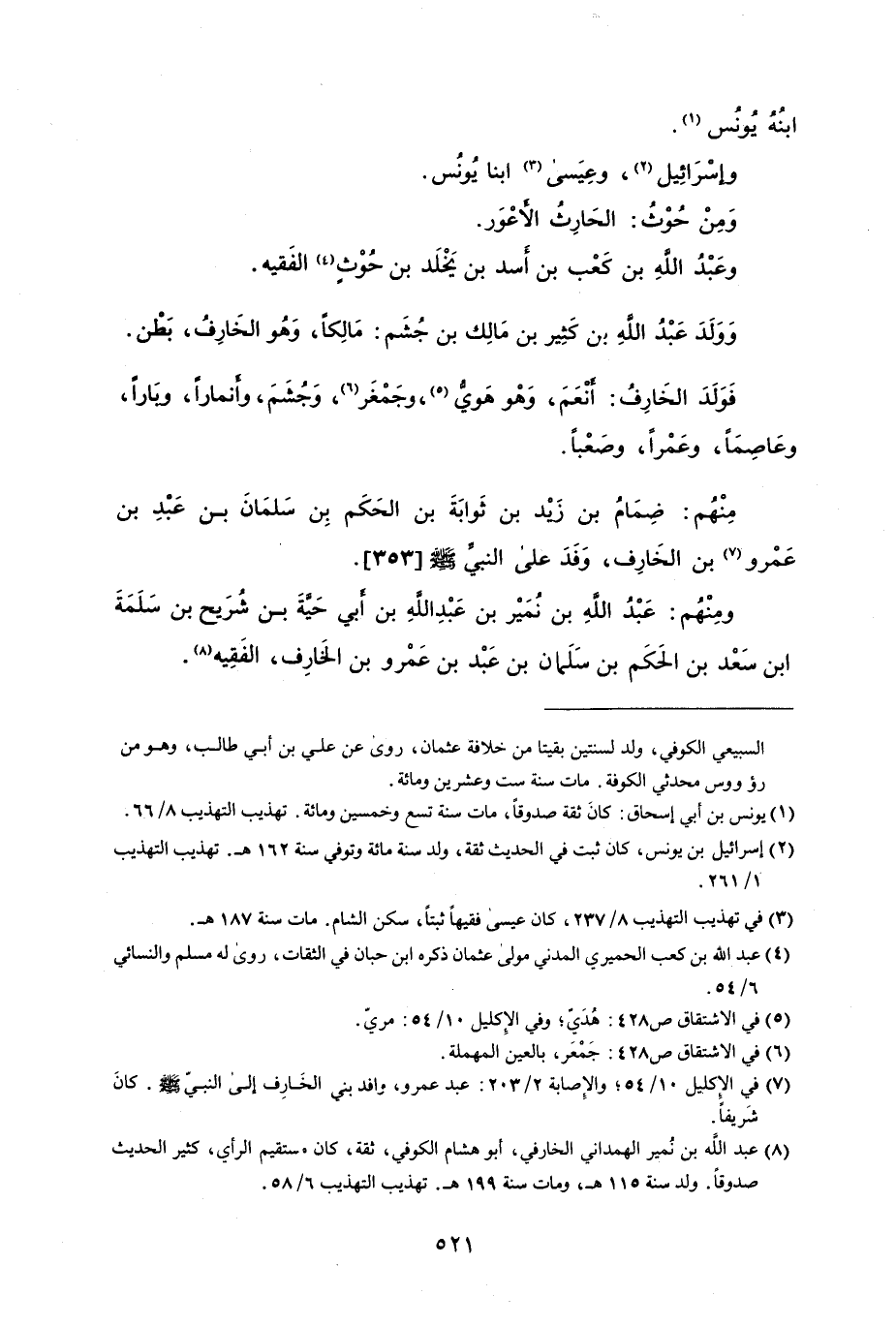 ومنهم: عبد الله بن نمير بن عبد الله بن أبي حيةَ بن شريح بن سلمة ابن سعد بن الحكم بن سلمان بن عبد بن عمرو بن الخارف، الفقيه.