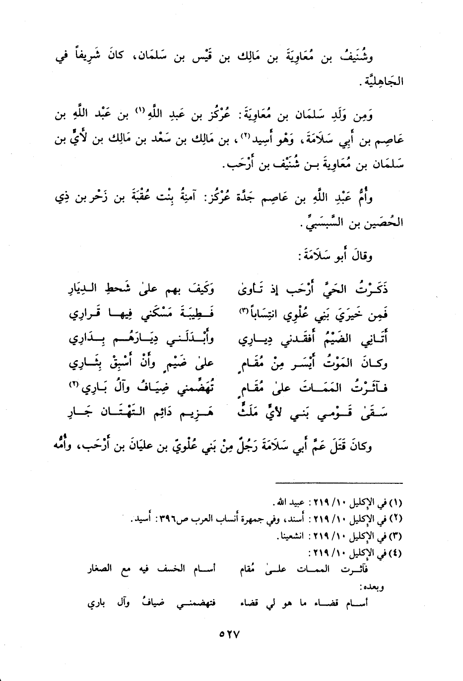 ومن ولد سلمان بن معاوية: عُركز بن عبد الله بن عبد الله بن عاصم بن أَبي سلامةَ، وهو أَسيد، بن مالك بن سعد بن مالك بن لأَيٍّ بن سلمان بن معاوية بن شُنيف بن أَرحب.