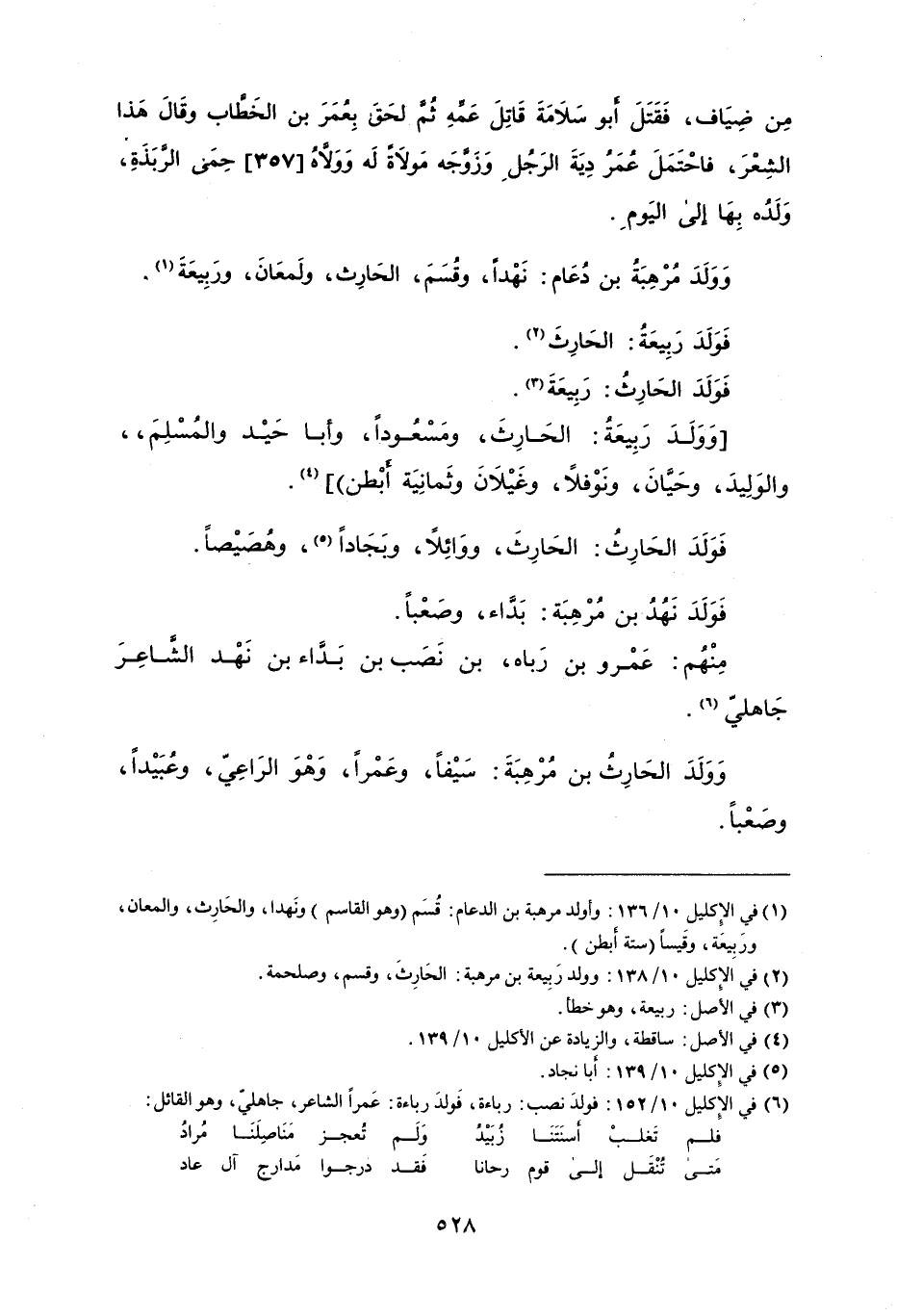 وولد الحارثُ بن مرهبة: سيفاً، وعمراً، وهو الراعيّ، وعبيداً، وصعباً.