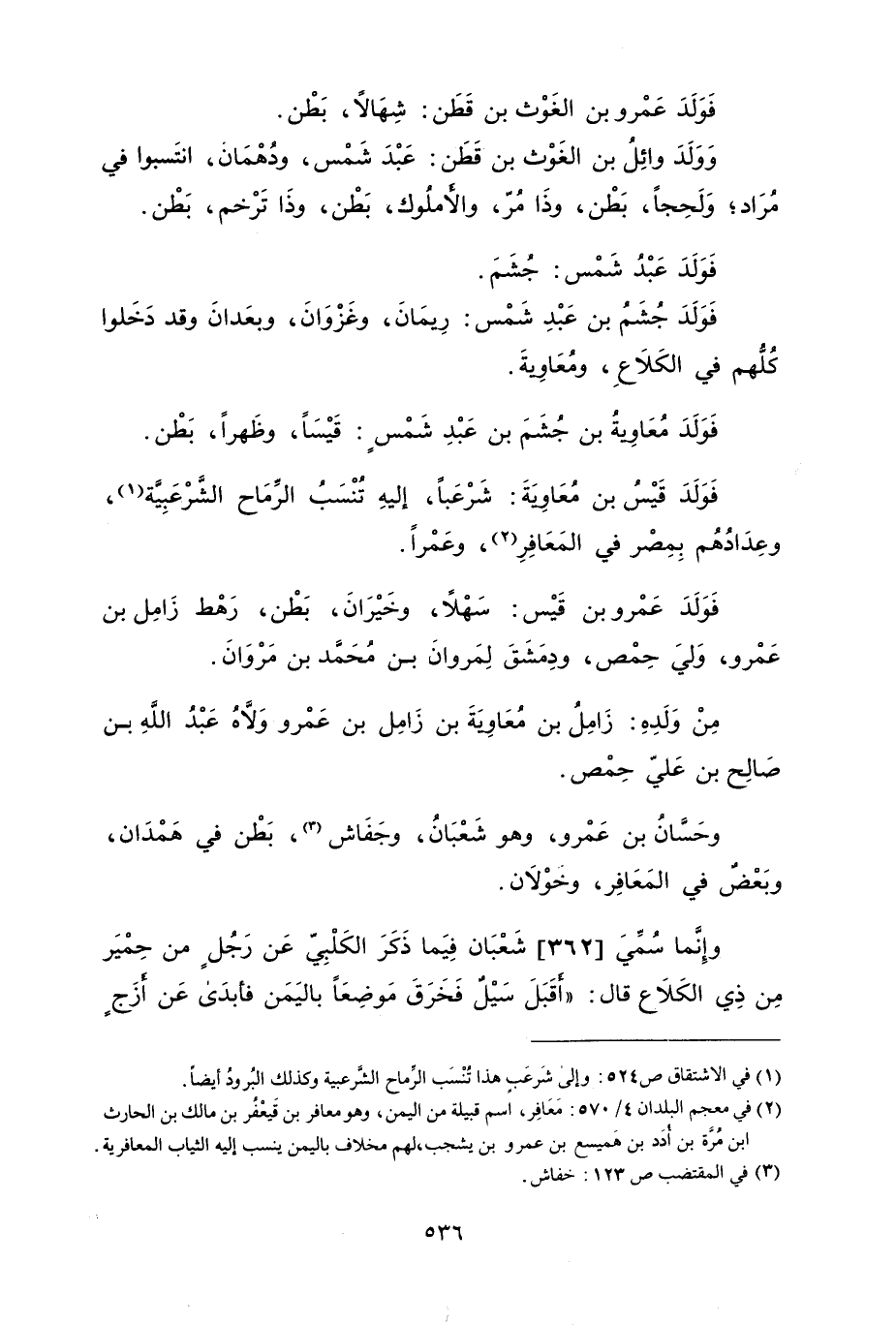 وحسَّانُ بن عمرو، وهو شعبانُ، وجفاش، بطن في همدان، وبعضٌ في المعافِر، وخولان.