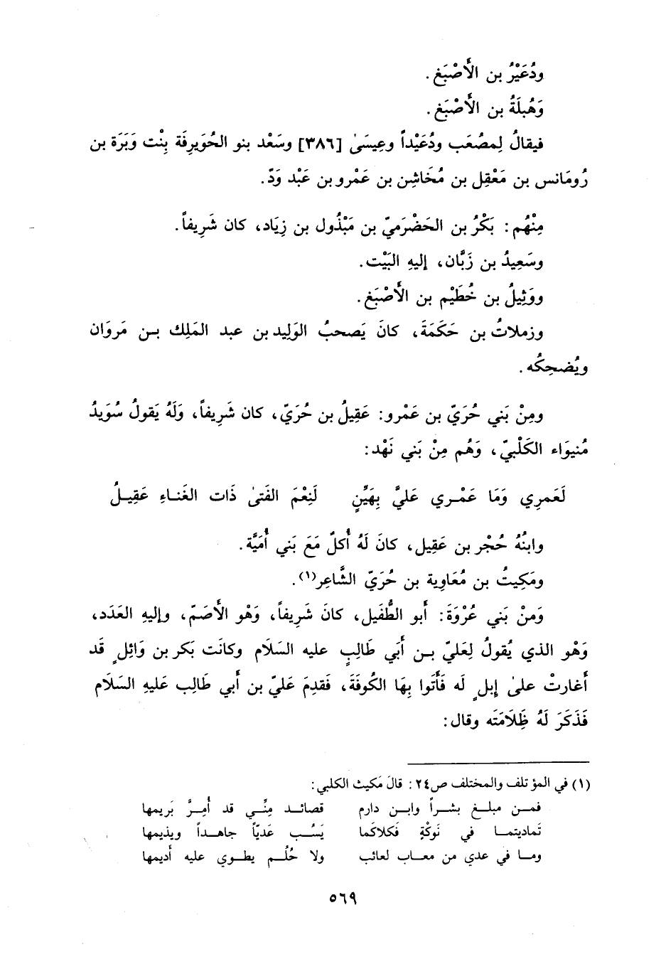 ومن بني عروةَ: أَبو الطفيل، كان شريفاً، وهو الأَصمّ، وإليه العدد، وهو الذي يقولُ لعليّ بن أَبي طالبٍ عليه السلام وكانت بكر بن وائلٍ قد أَغارت على إِبلٍ له فأَتوا بها الكوفةَ، فقدمَ عليّ بن أَبي طالب عليه السلام فذكرَ له ظلامته وقال: