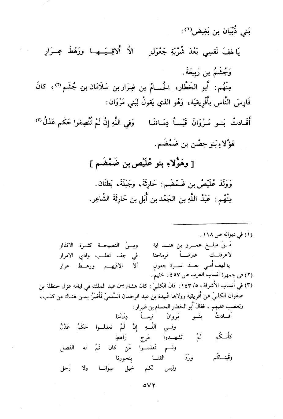 منهم: أَبو الخطَّار، الحُسامُ بن ضرار بن سلامان بن جُشم، كان فارسَ النَّاس بأَفريقية، وهو الذي يقول لبني مروان: