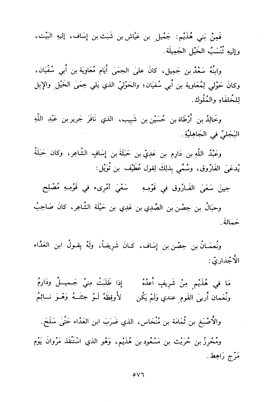 فمن بني هُذيم: جَميل بن عياش بن شبث بن إساف، إليه البيت، وإليه تُنسبُ الخيل الجميلة.